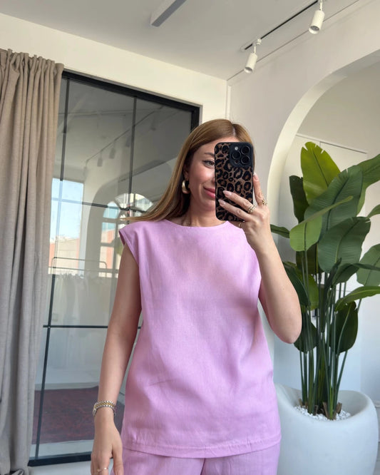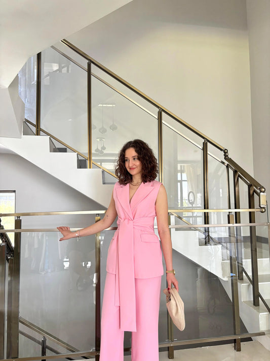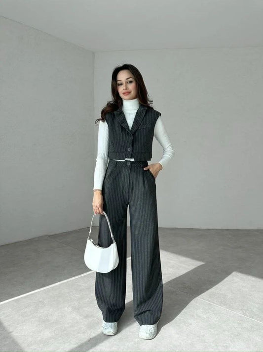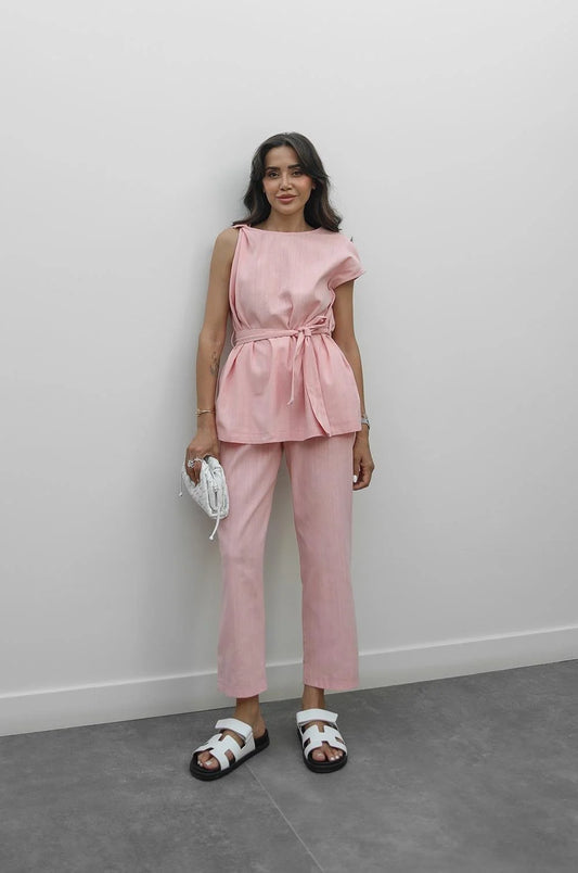 طقم رمادي بلوزة بلفحة مع بنطلون - KP1388