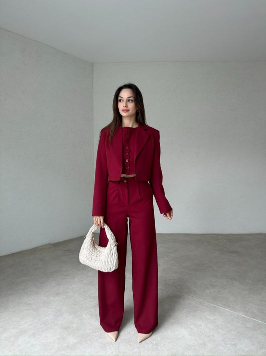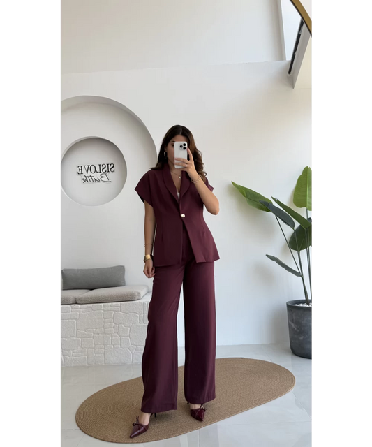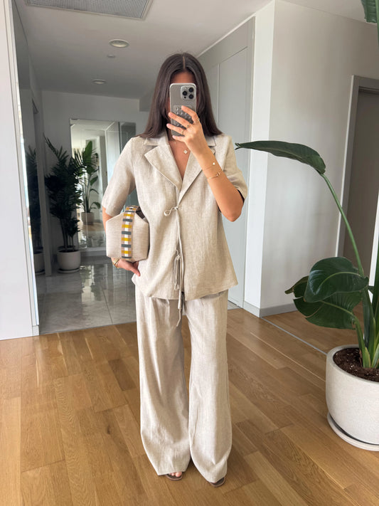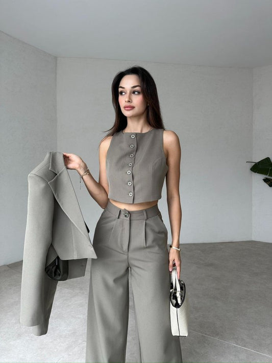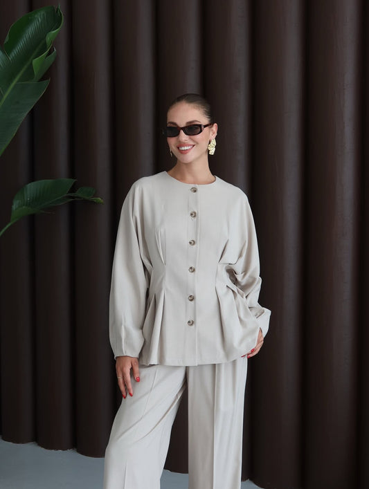 طقم جكيت مخصر مع بنطلون بيج - KP1344