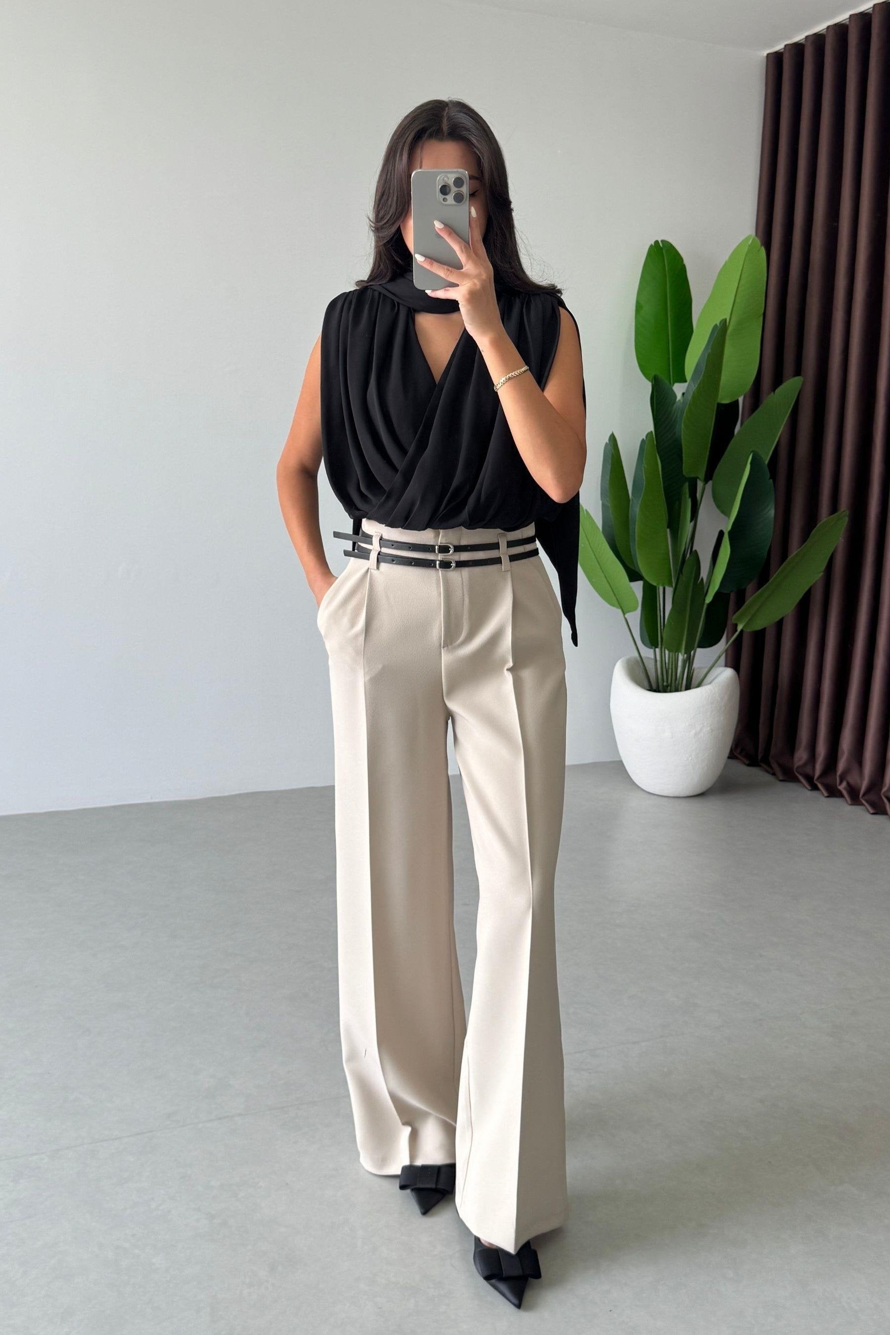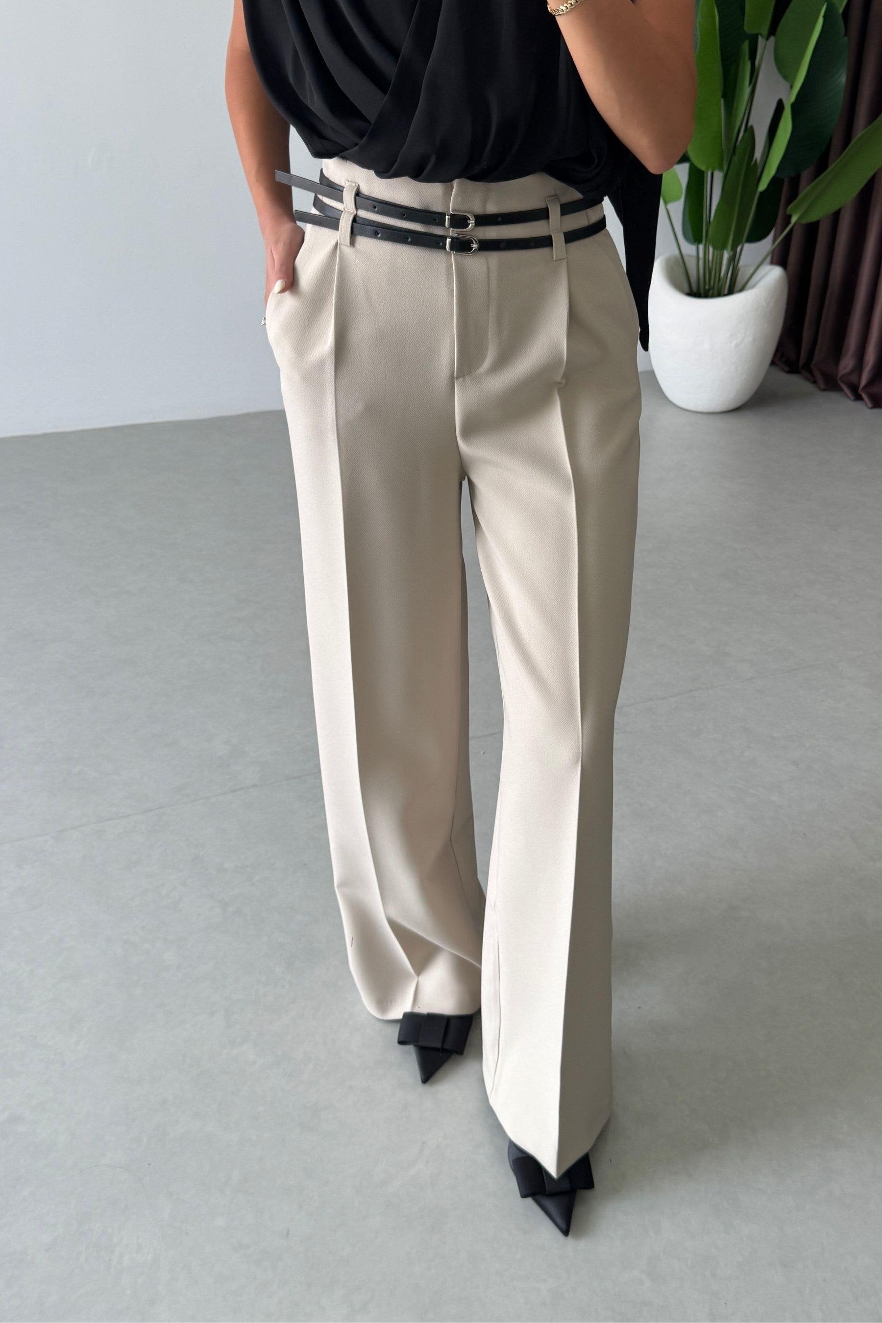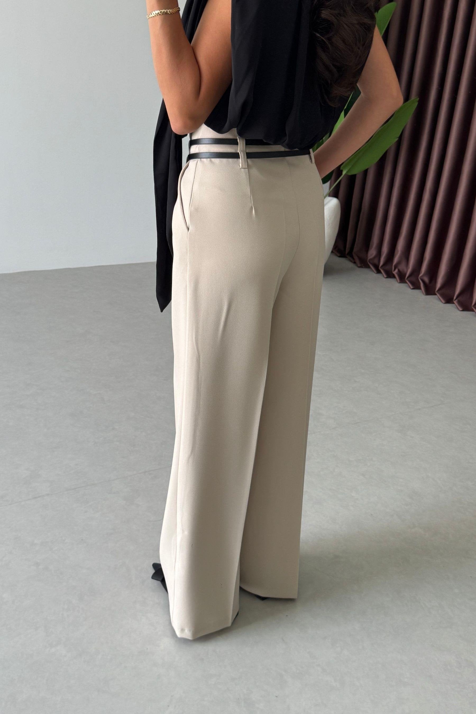 بنطلون بيج بحزام - KP5054