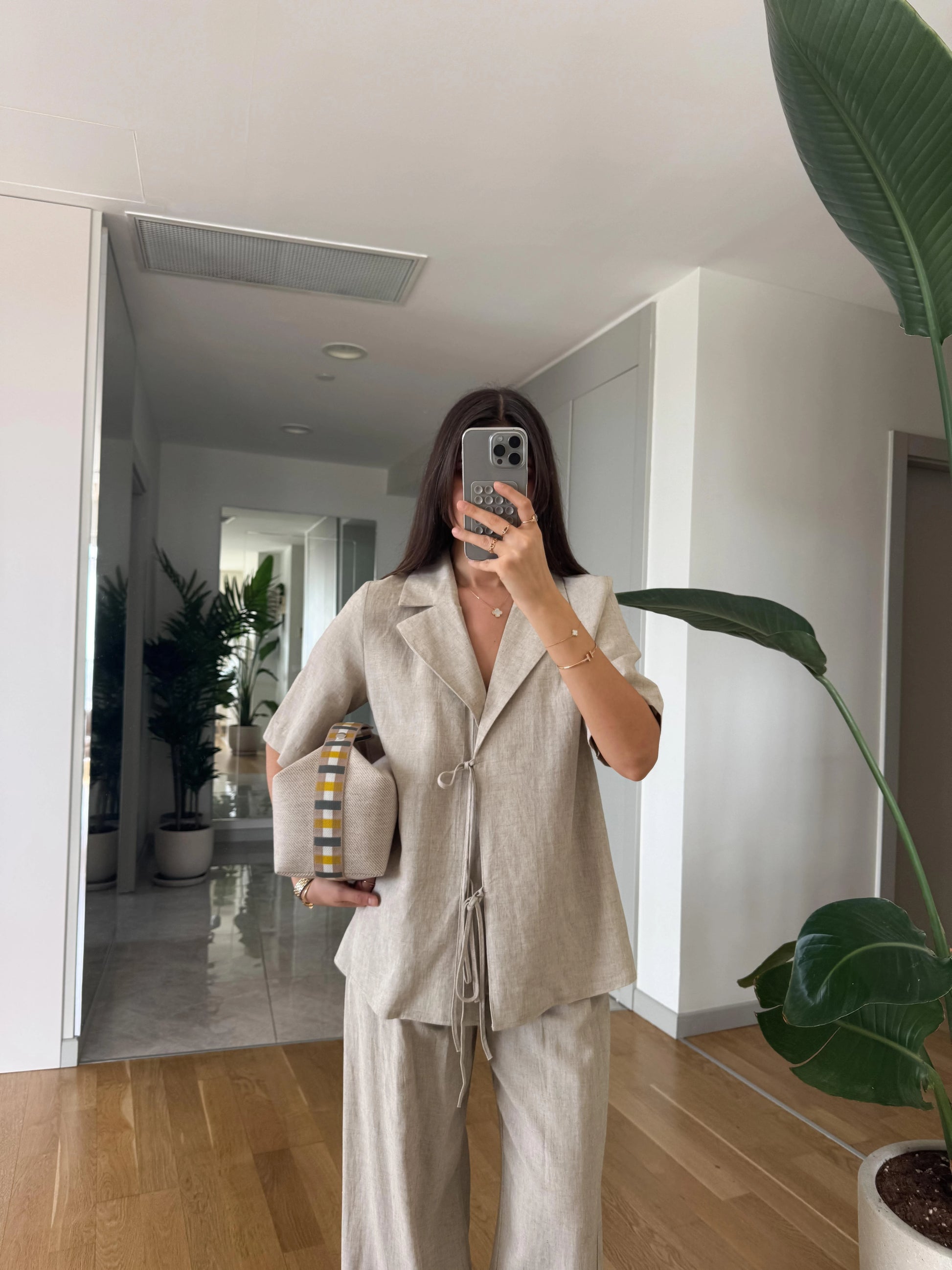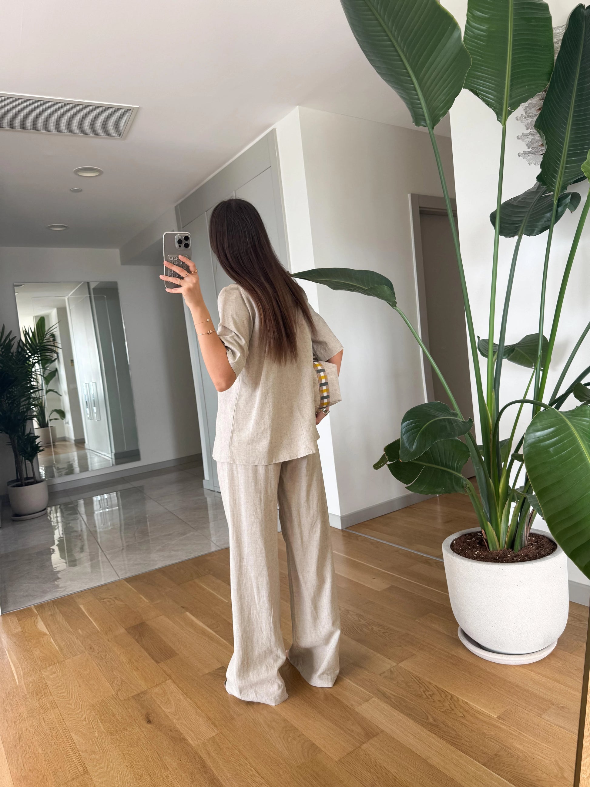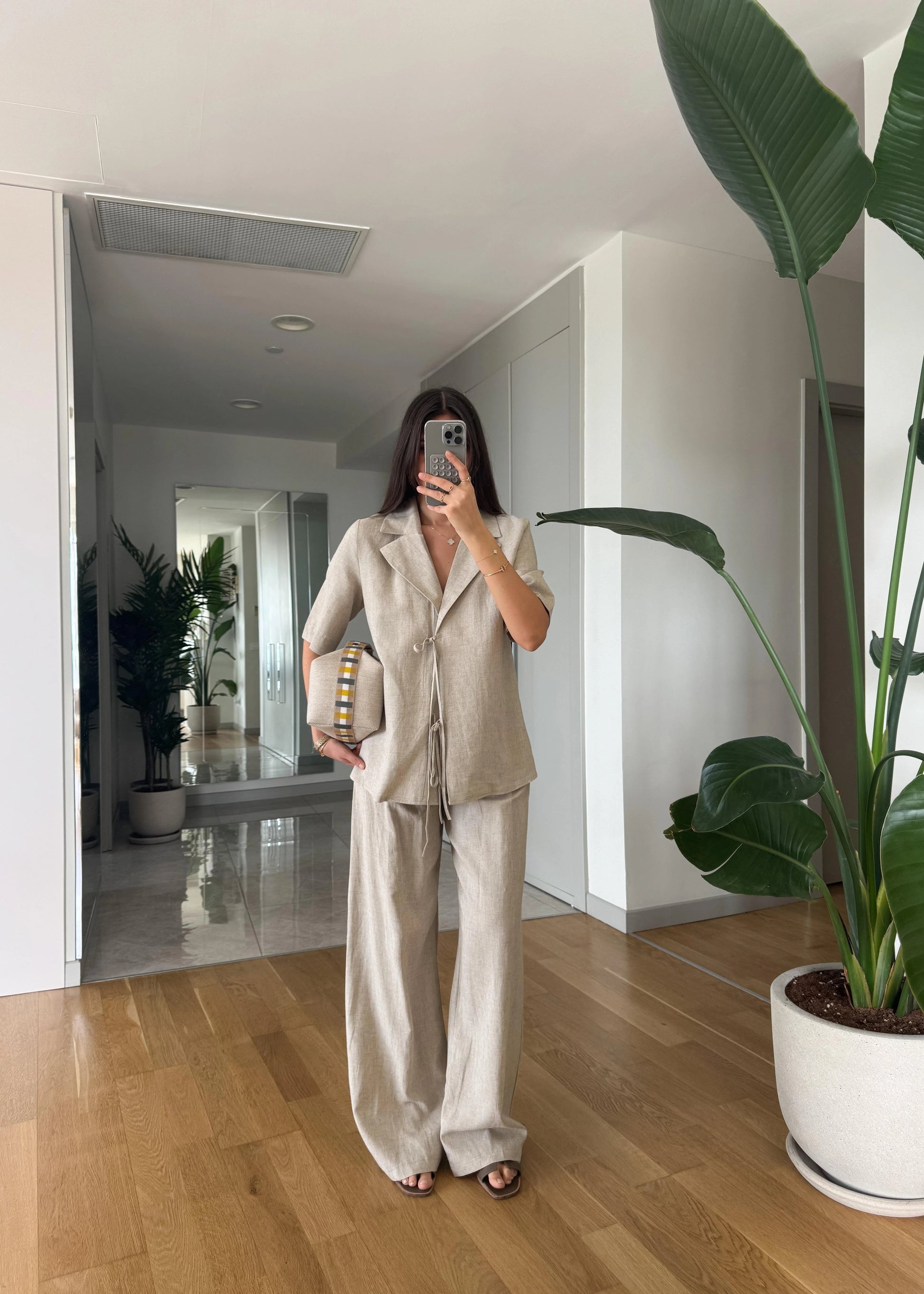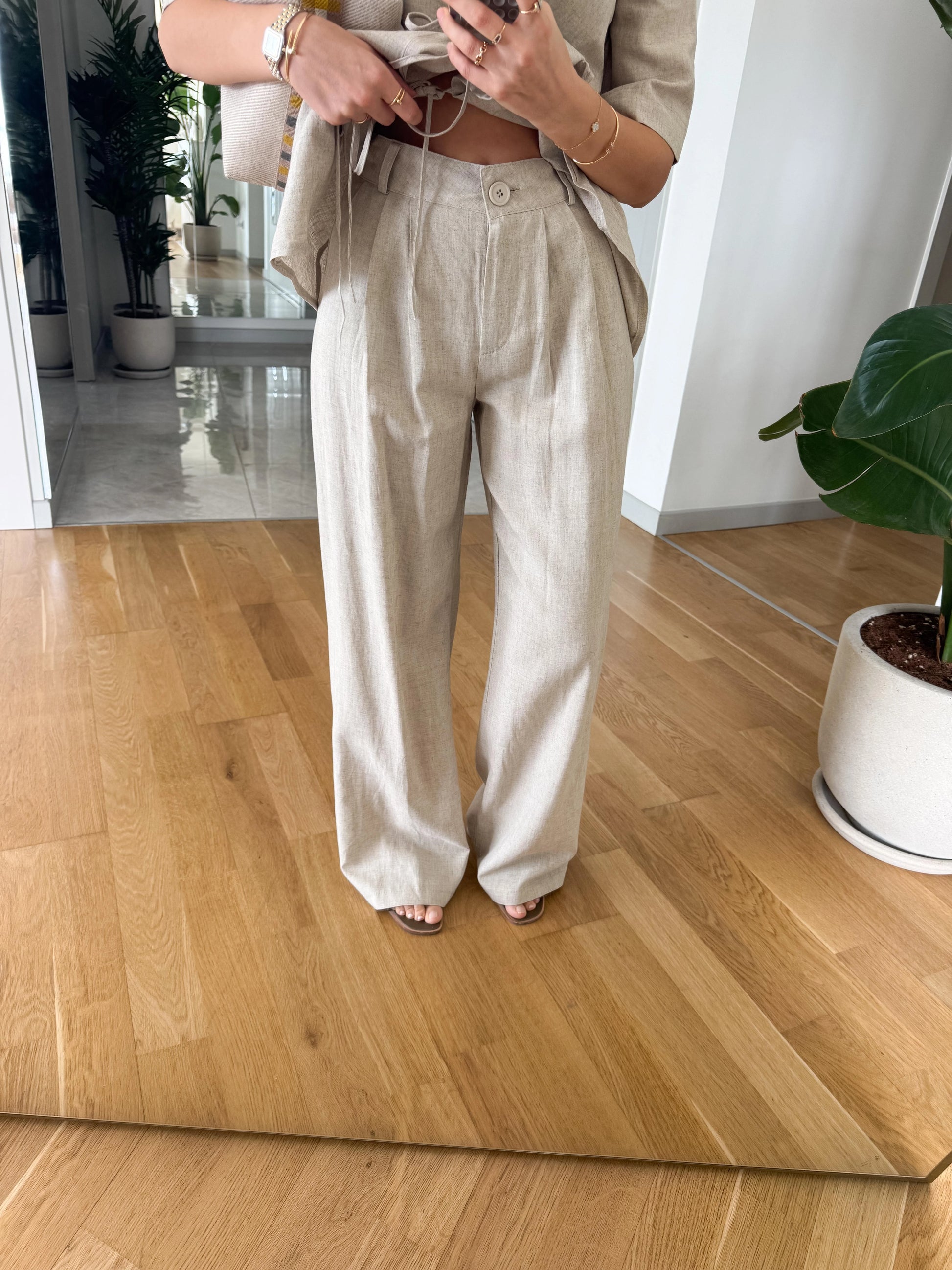 طقم بلوزة ربط مع بنطلون بيج - KP1356