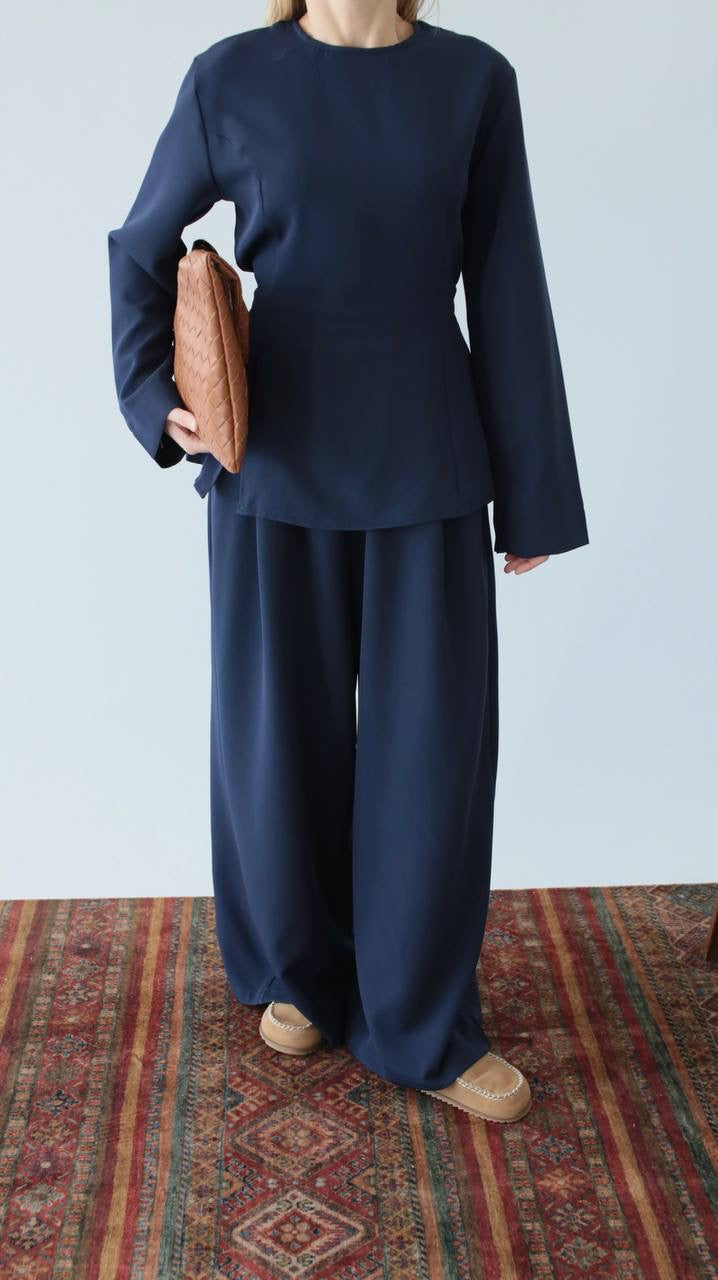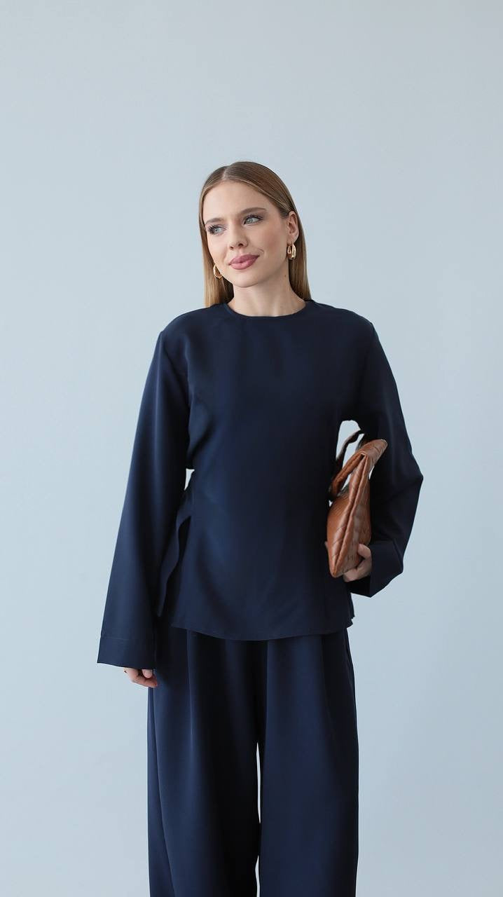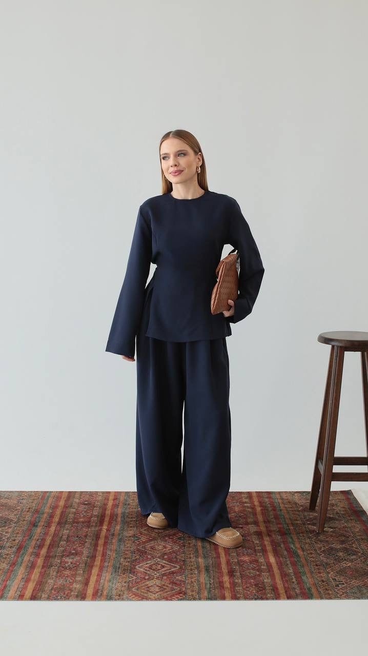 طقم بلوزة مع بنطلون كحلي - KP1406