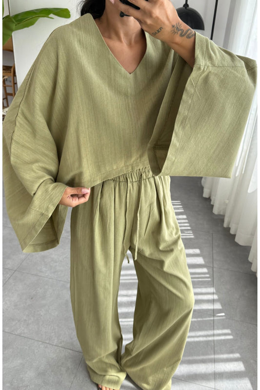 طقم بلوزة مع تنورة ربط رمادي - KP1281
