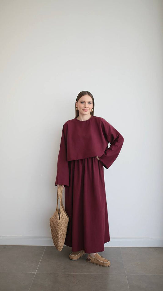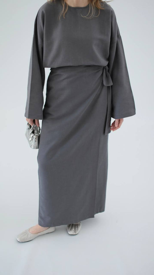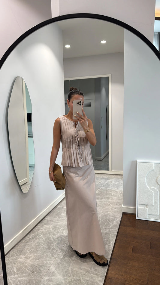 طقم بلوزة مع تنورة بيج غامق - KP1154