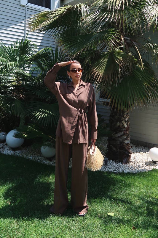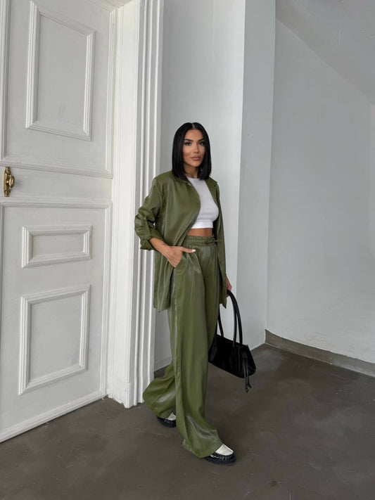 طقم قميص مع بنطلون زيتي Zara - KP1392