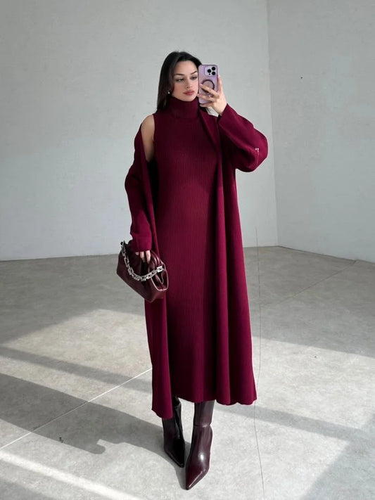 طقم فستان مع جرزة خمري - KP1130