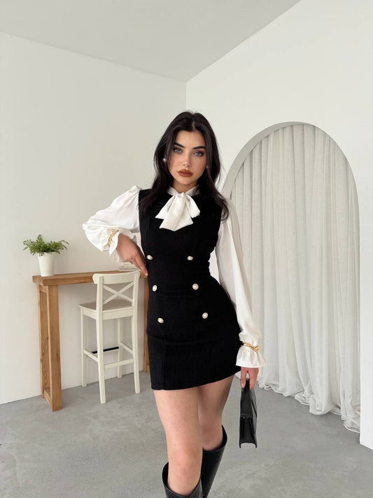 فستان ميني اسود مع قميص - KP2224