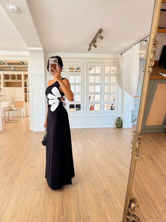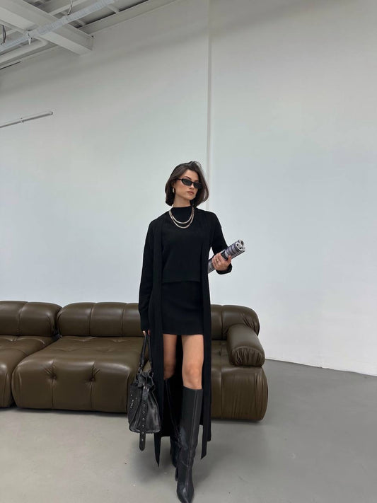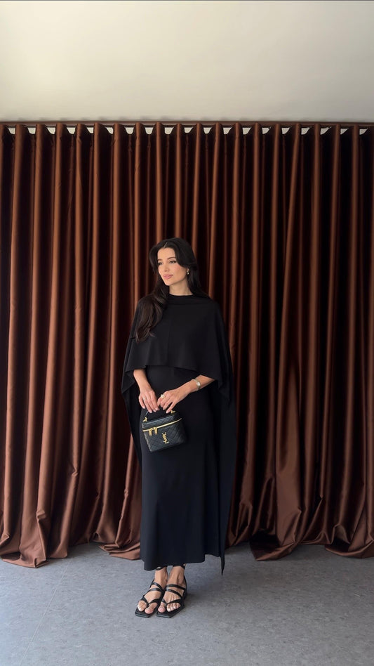 طقم فستان مع بانشو اسود - KP2193