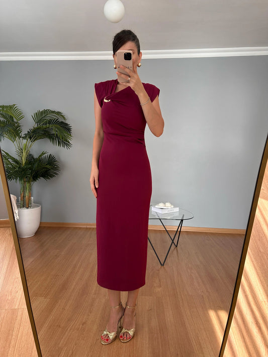 فستان لايكرا خمري - KP2229