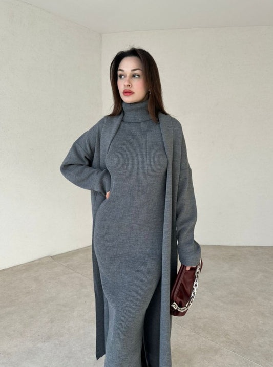 طقم فستان مع جرزة رمادي - KP1130