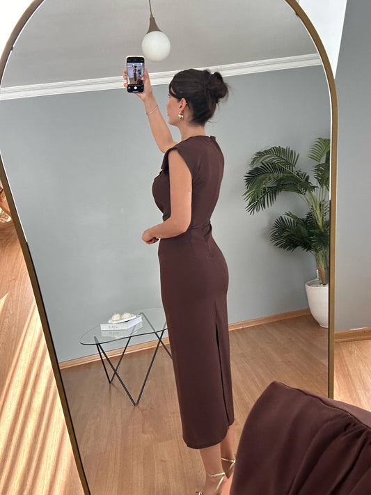 فستان لايكرا بني - KP2229