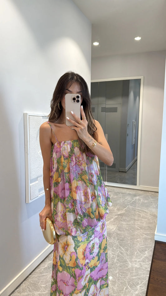 فستان شيفون زهري مورد - KP2213