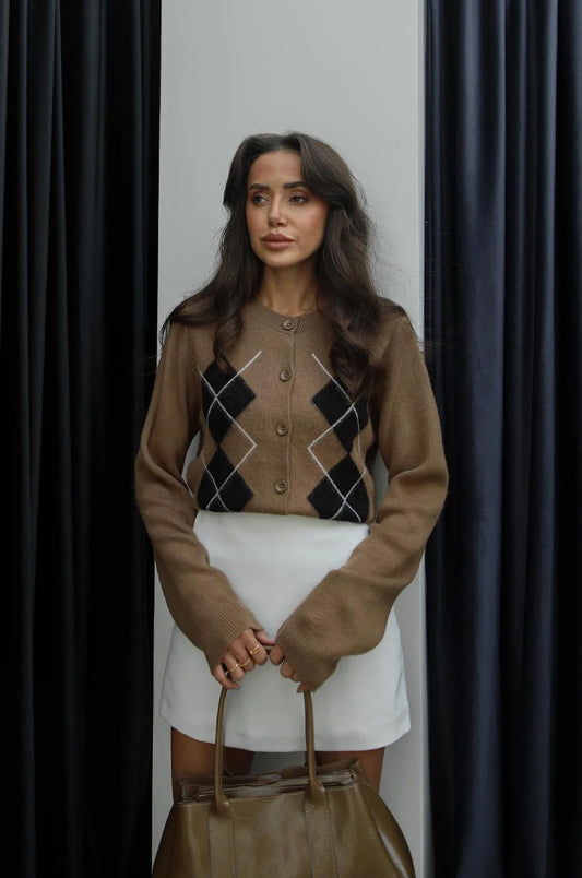 جكيت بني مخطط - KP7110