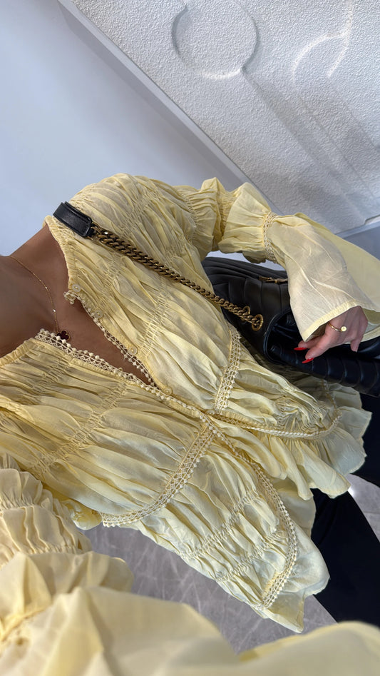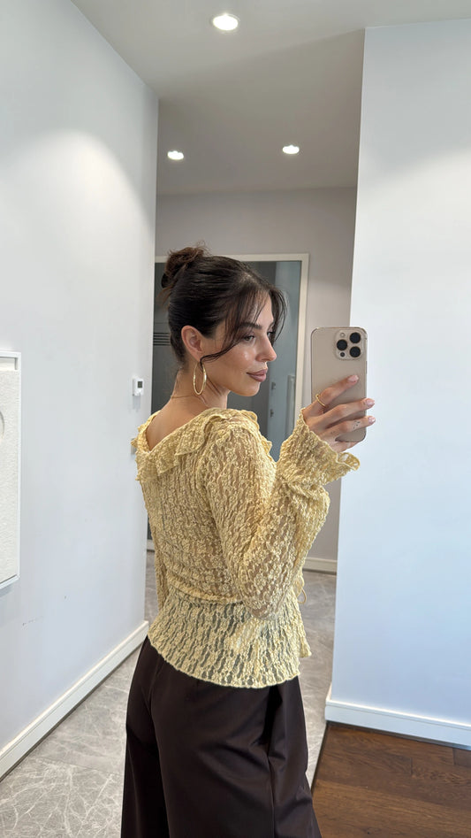 بلوزة دانتيل ربط اصفر - KP4249
