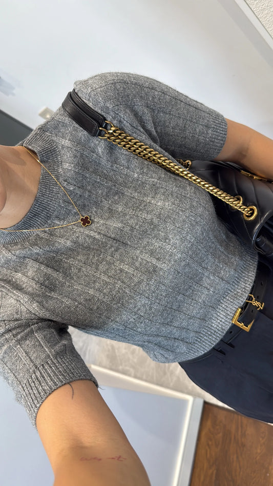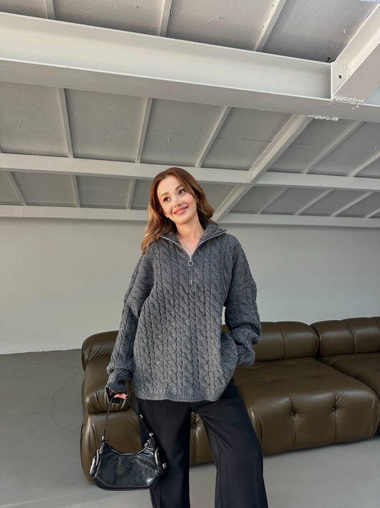 بلوزة رمادي مجدلة بسحاب - KP4244