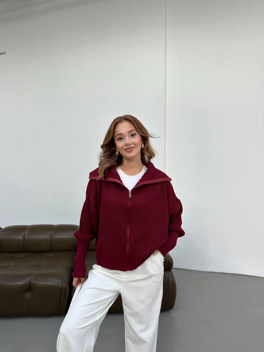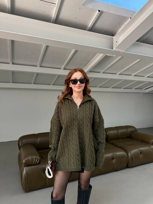 بلوزة زيتي مجدلة بسحاب - KP4244