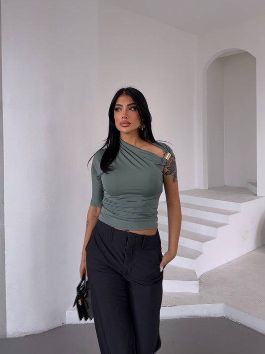 بلوزة لايكرا زيتي - KP4198