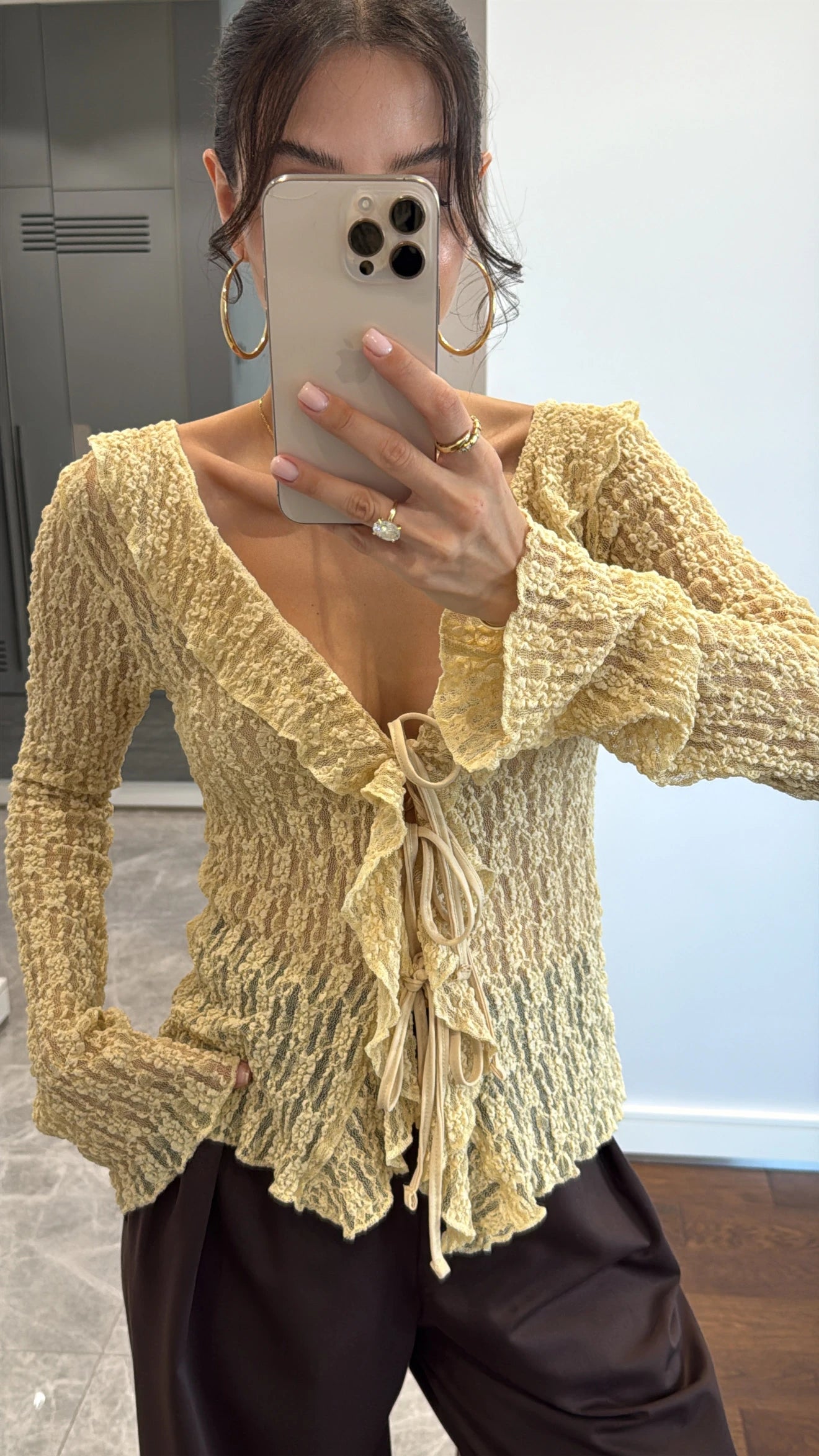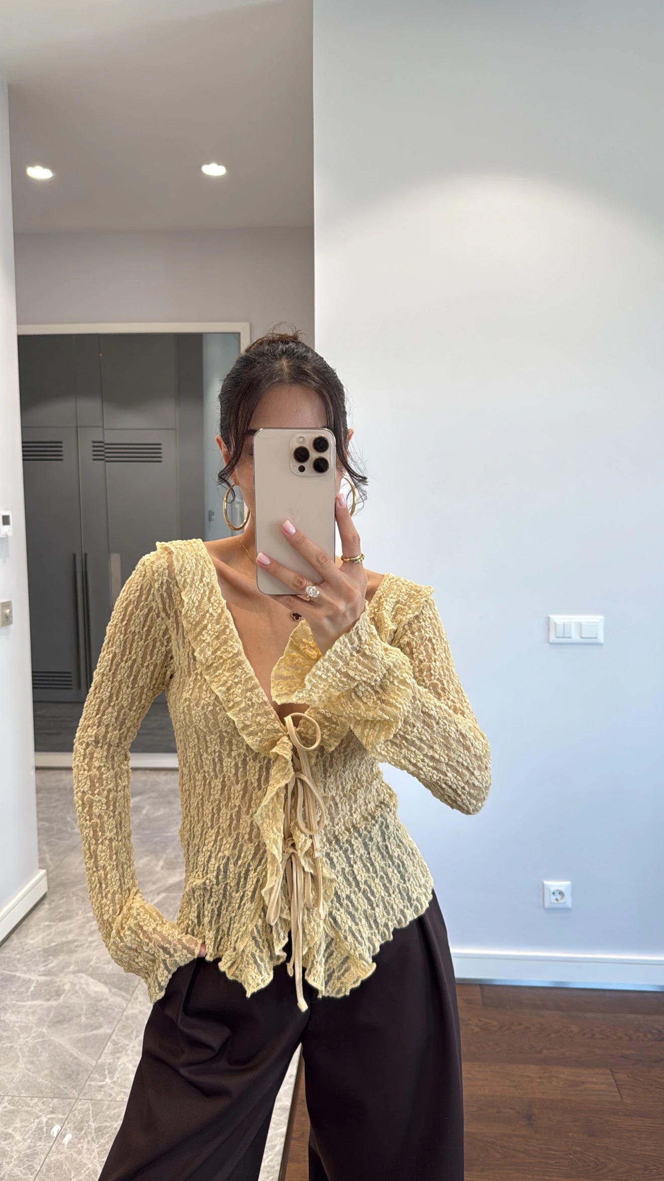 بلوزة دانتيل ربط اصفر - KP4249