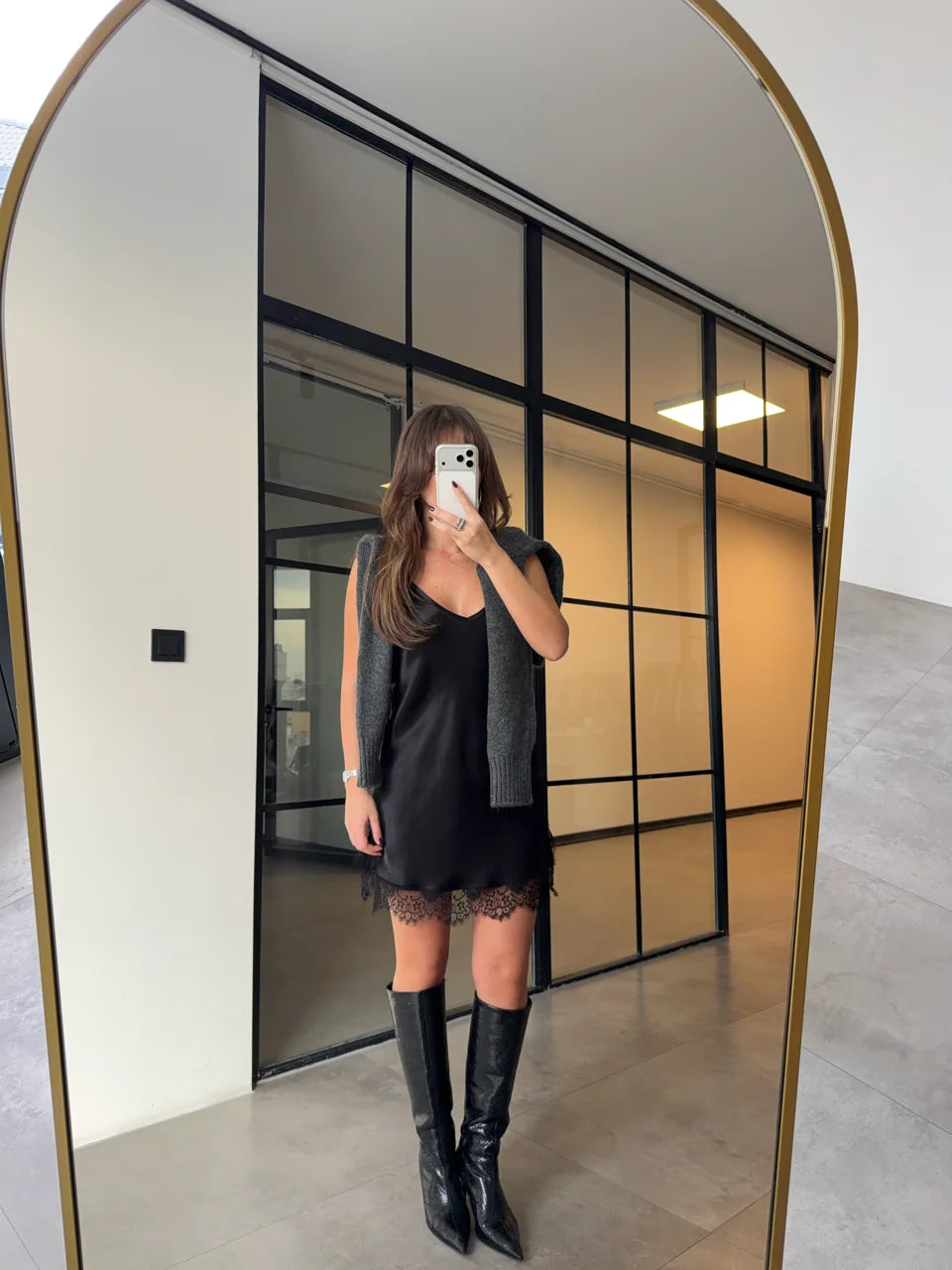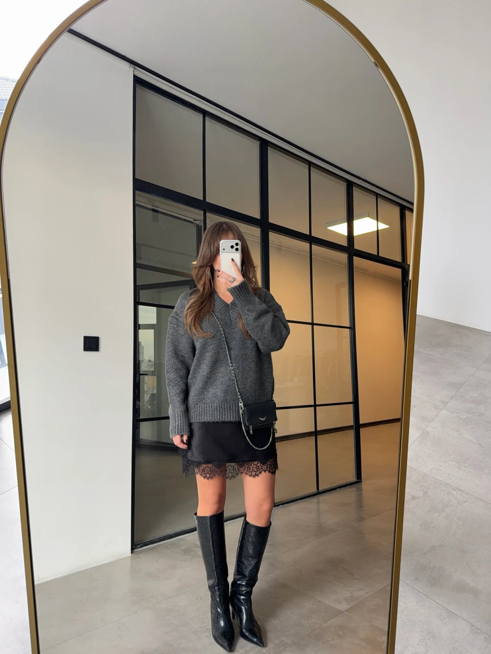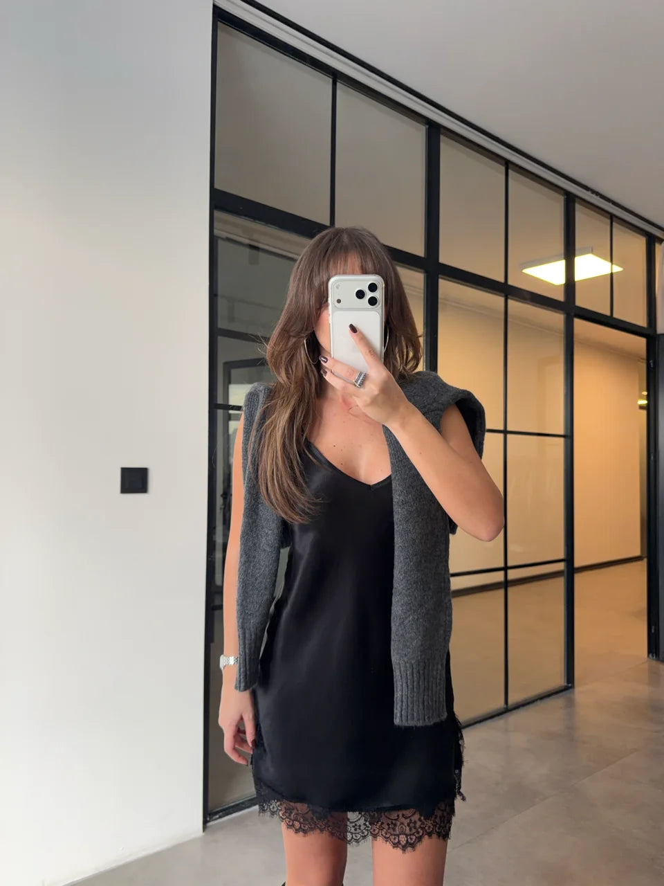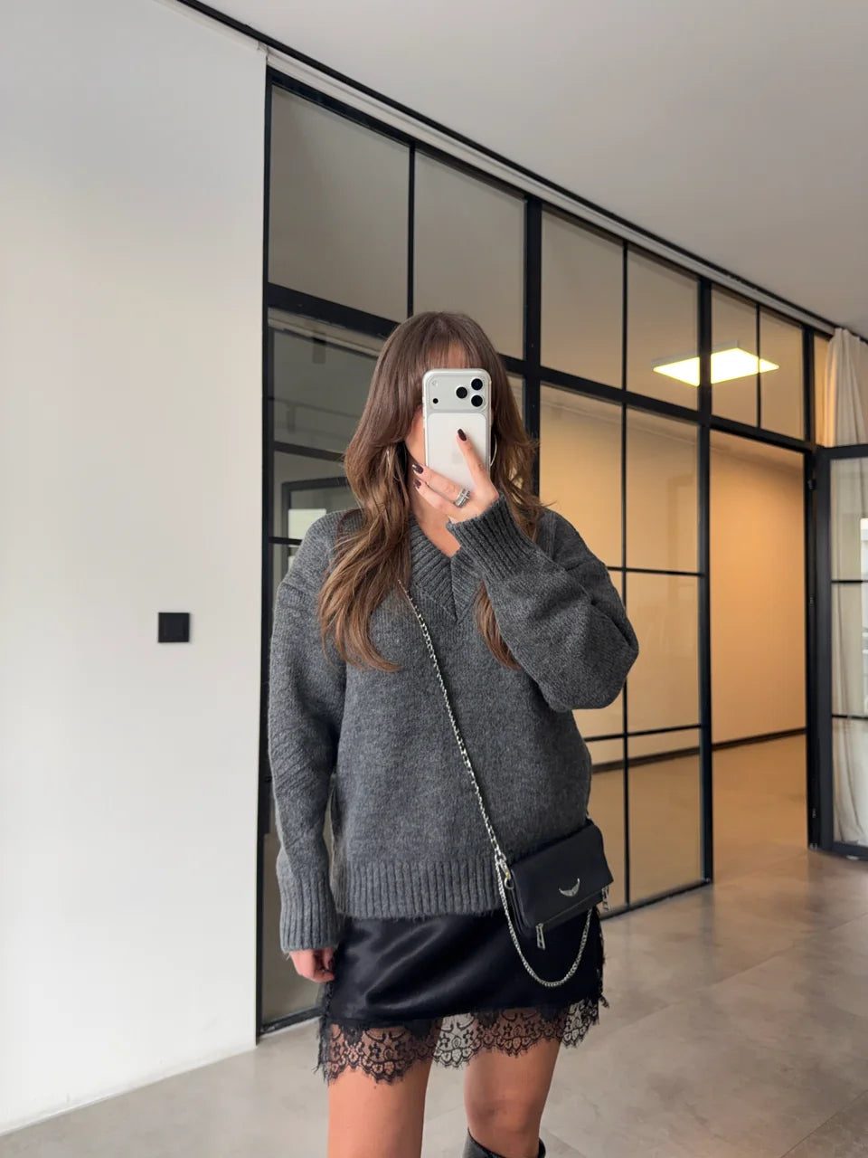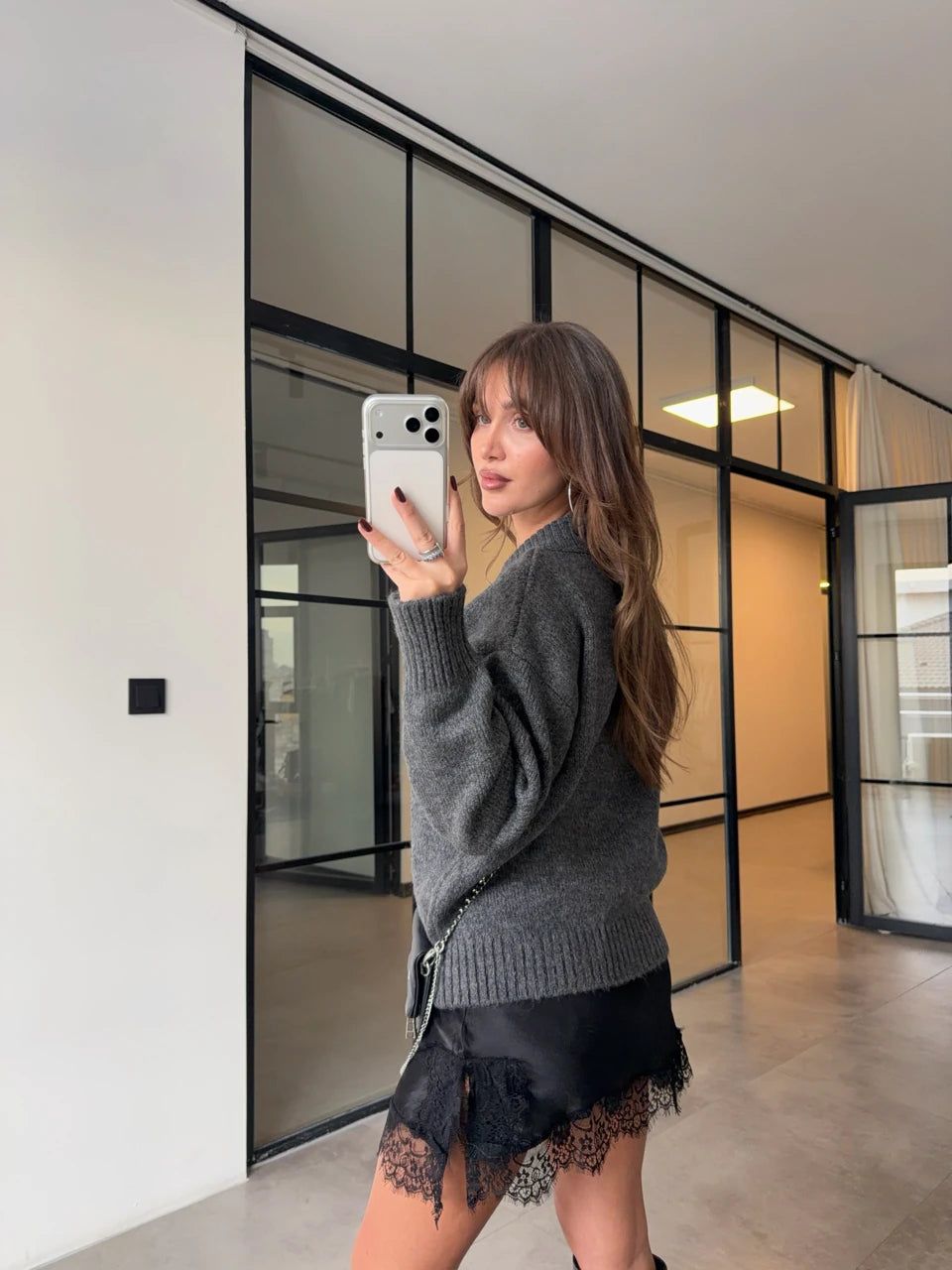 بلوزة رمادي مع بلوزة ستان - KP4417