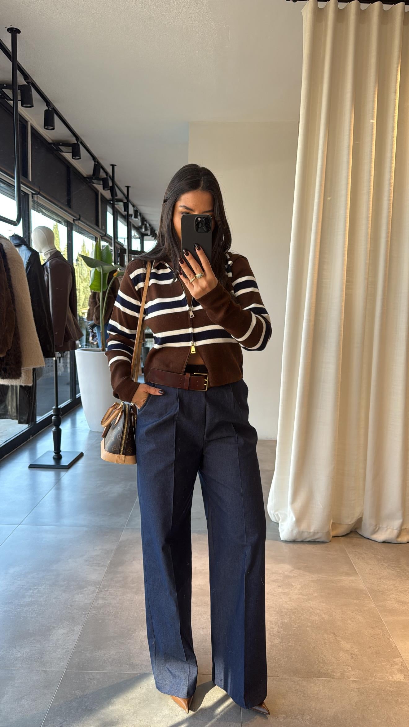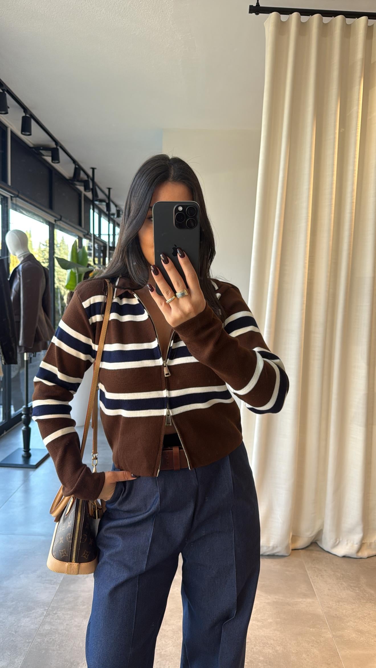 جرزة بسحاب مخططة كحلي وبني - KP4373