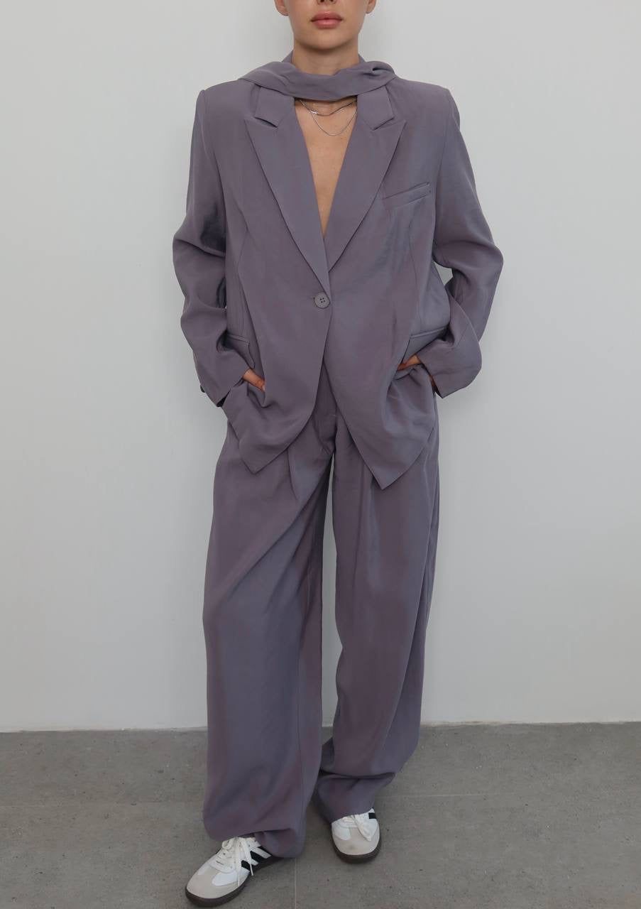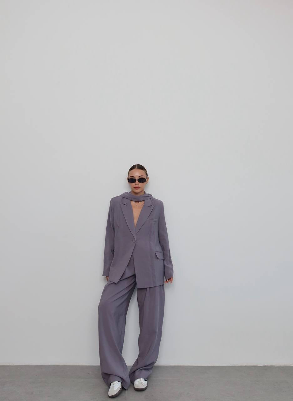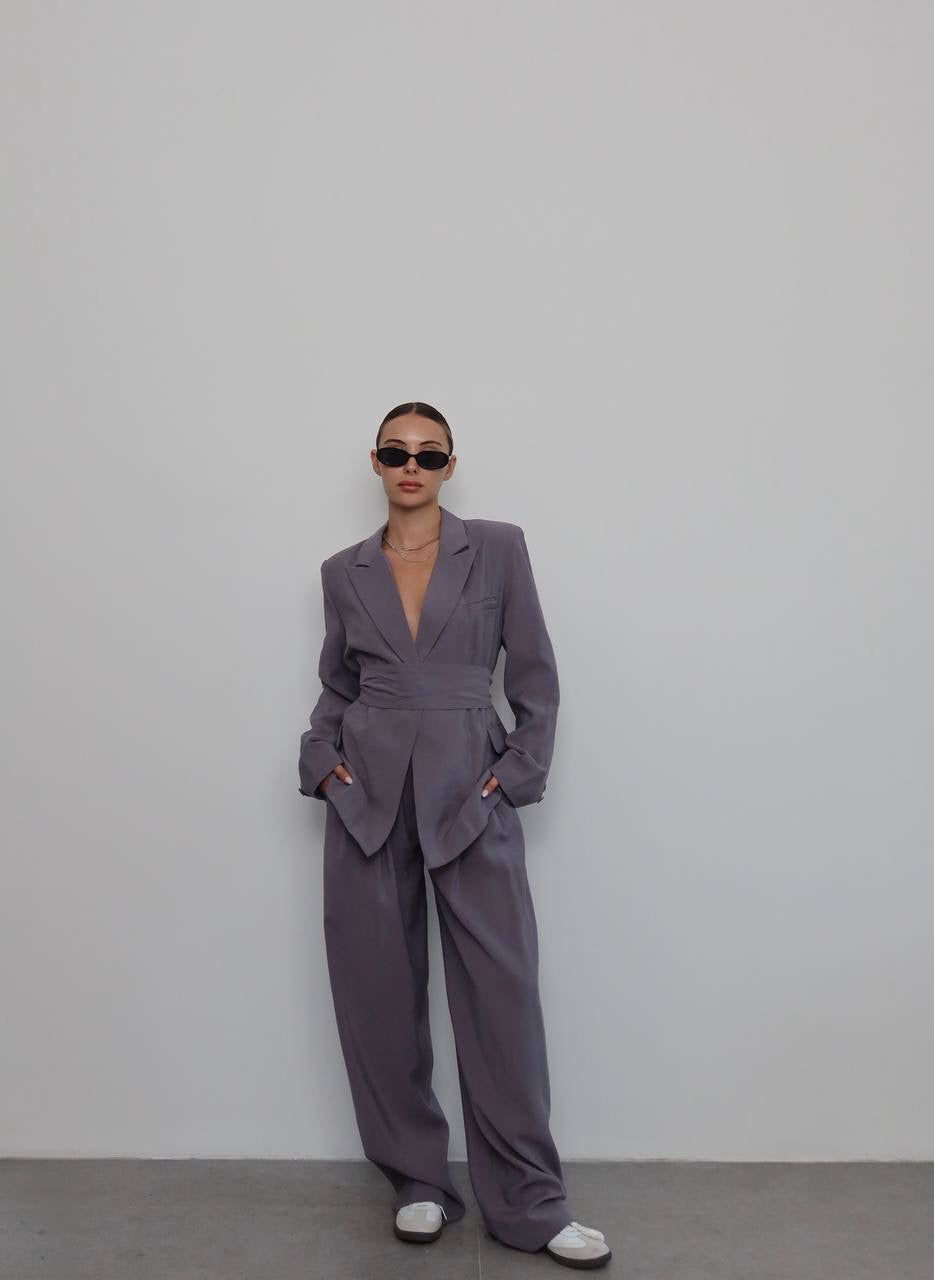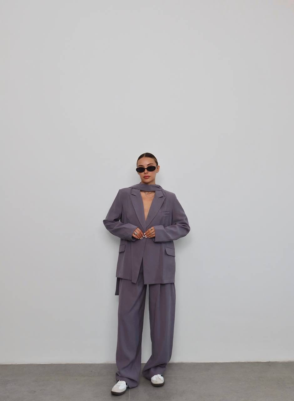 طقم بليزر بربطة مع بنطلون رمادي - KP1360