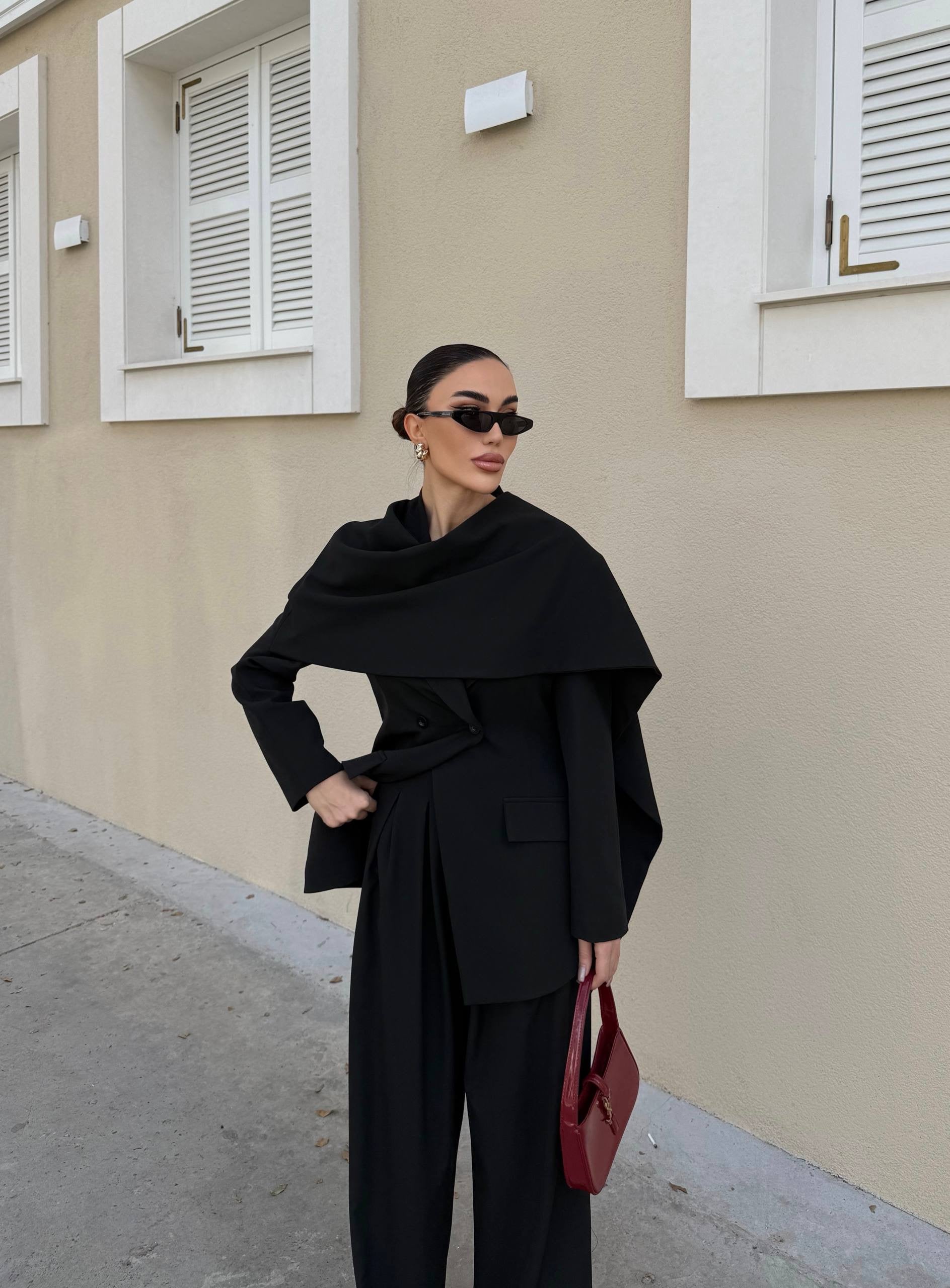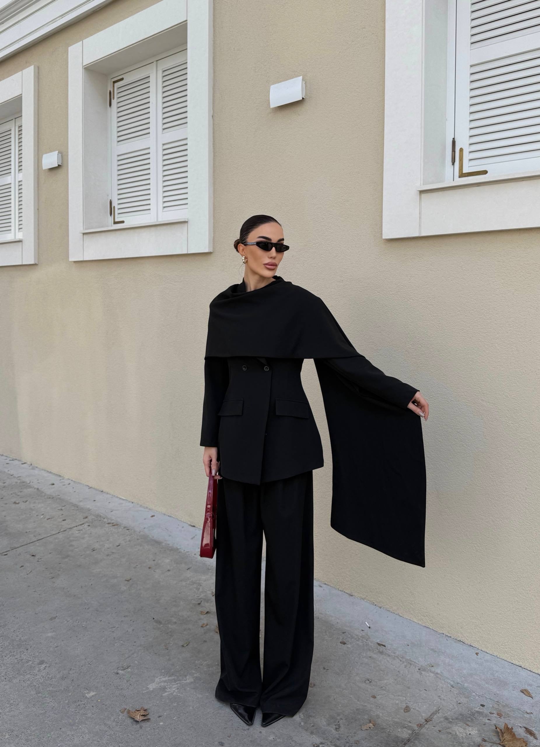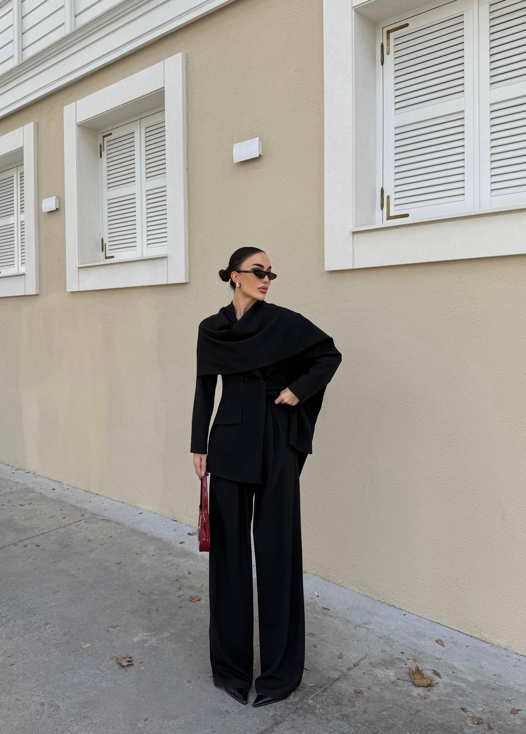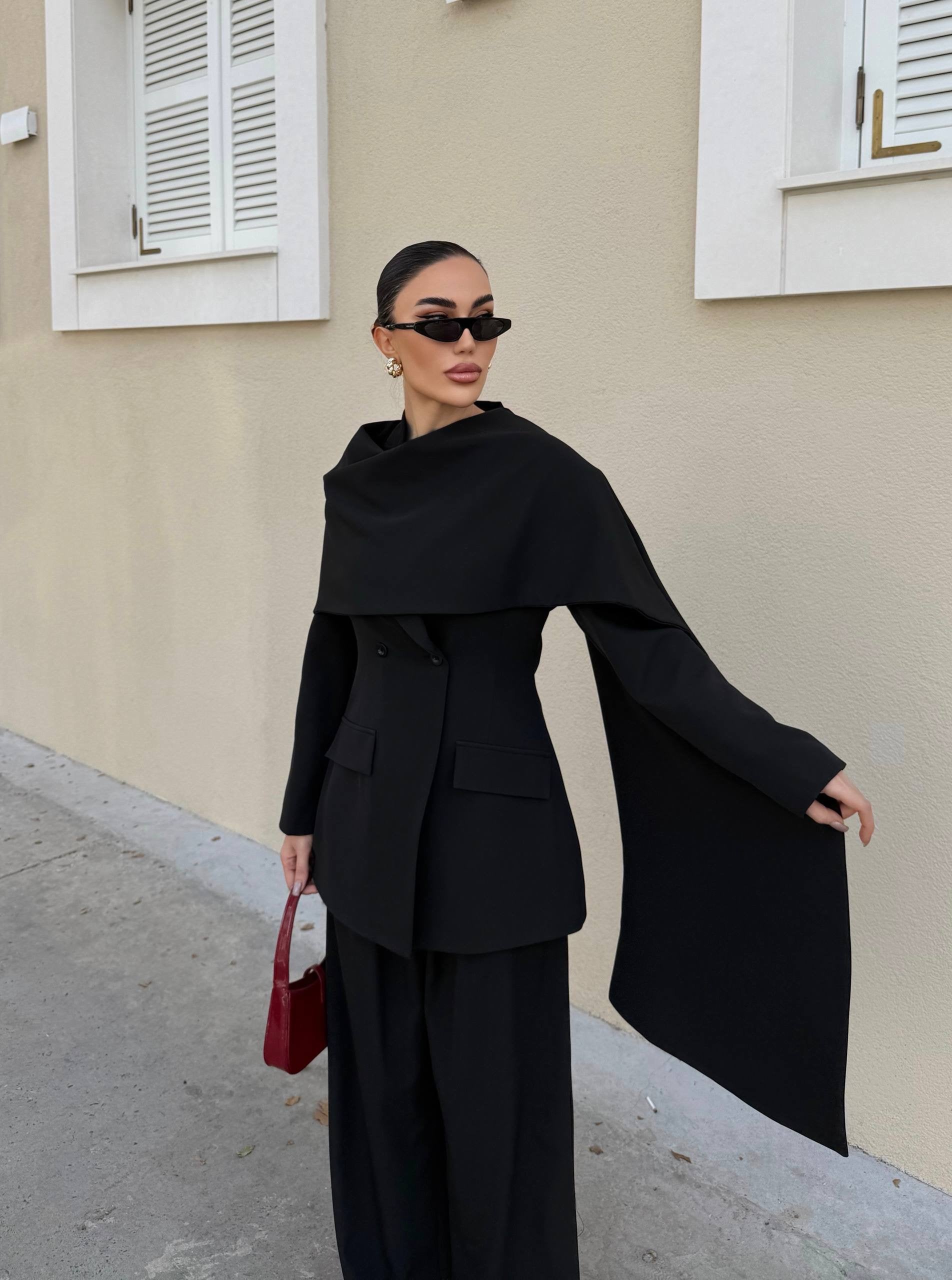 طقم بليزر مع لفحة وبنطلون اسود - KP1463