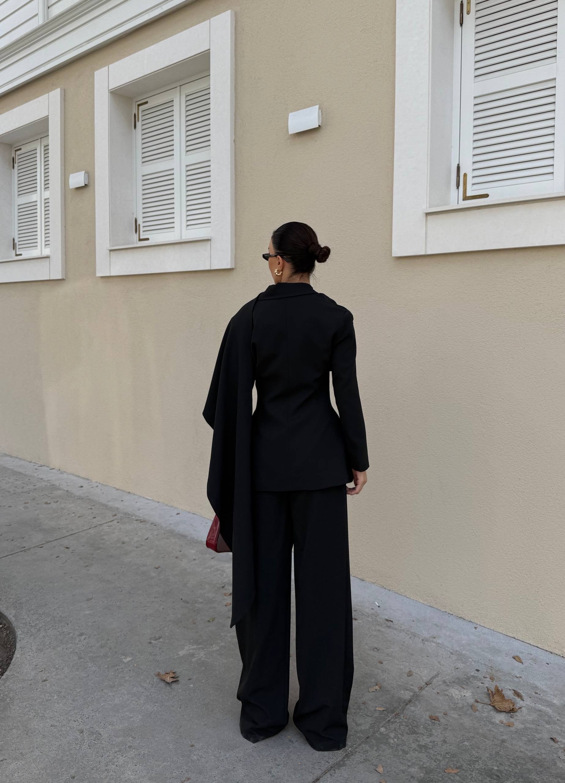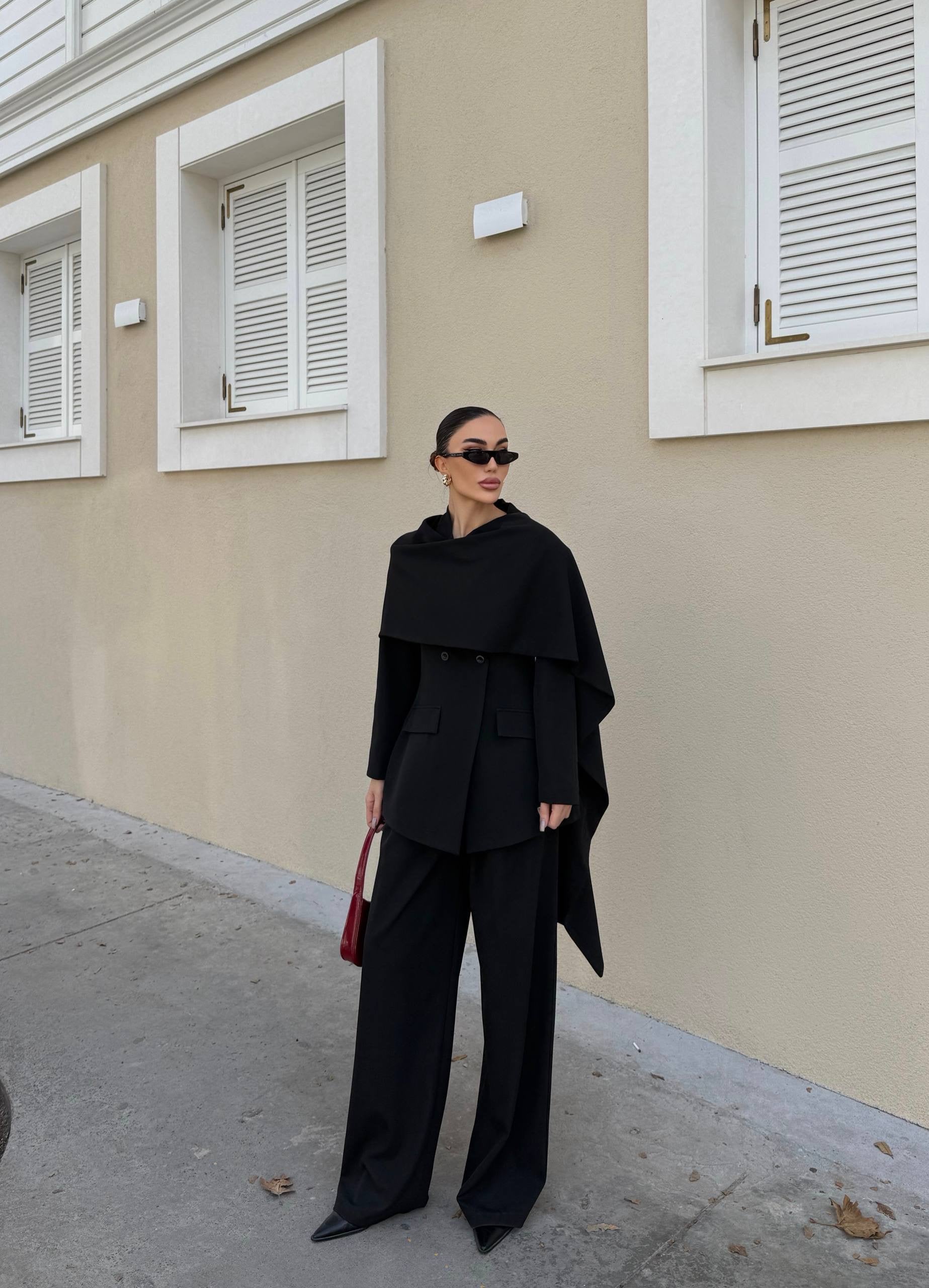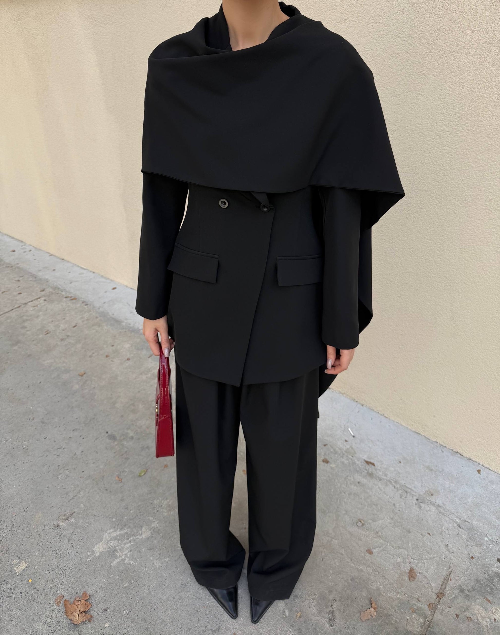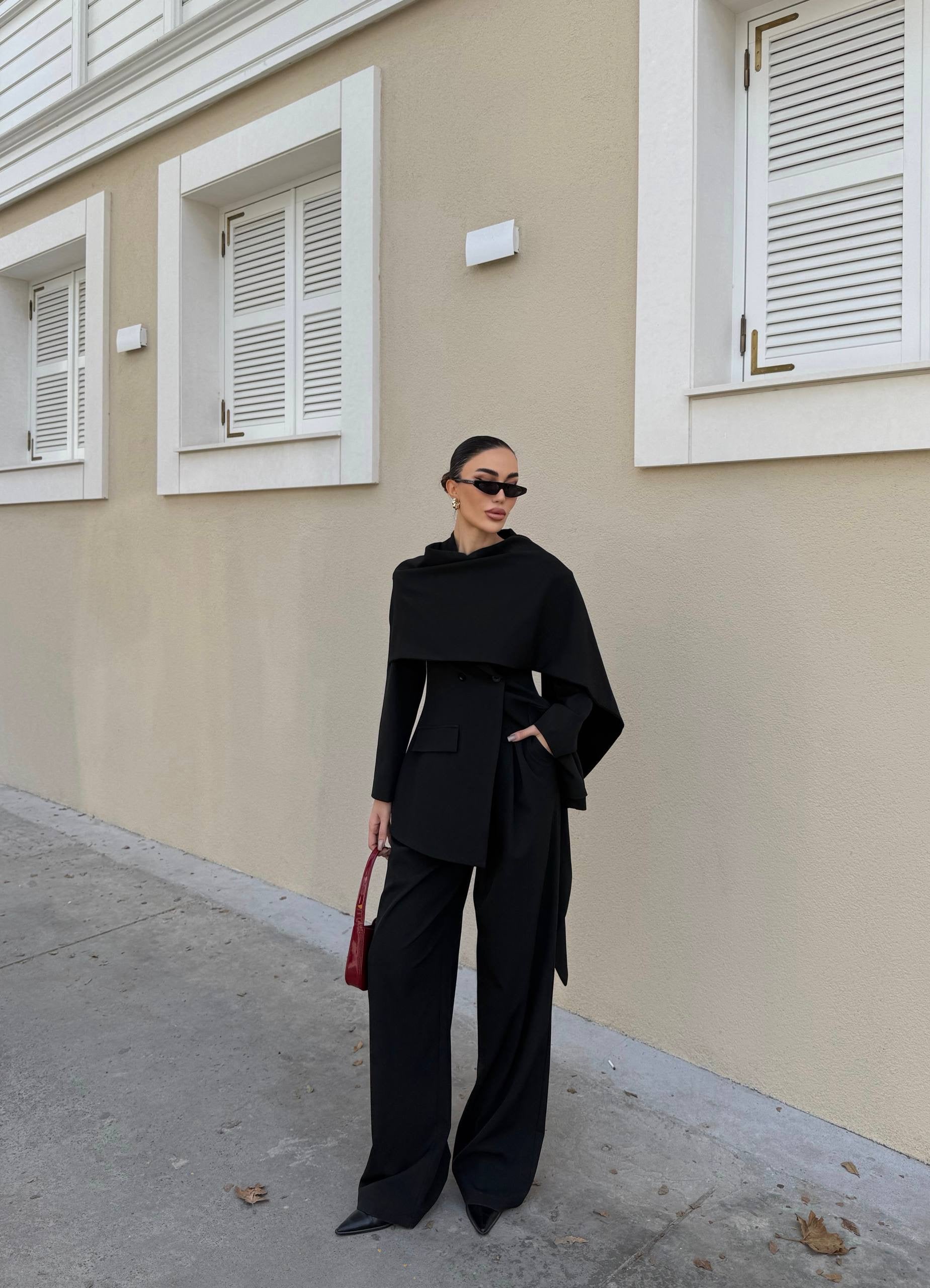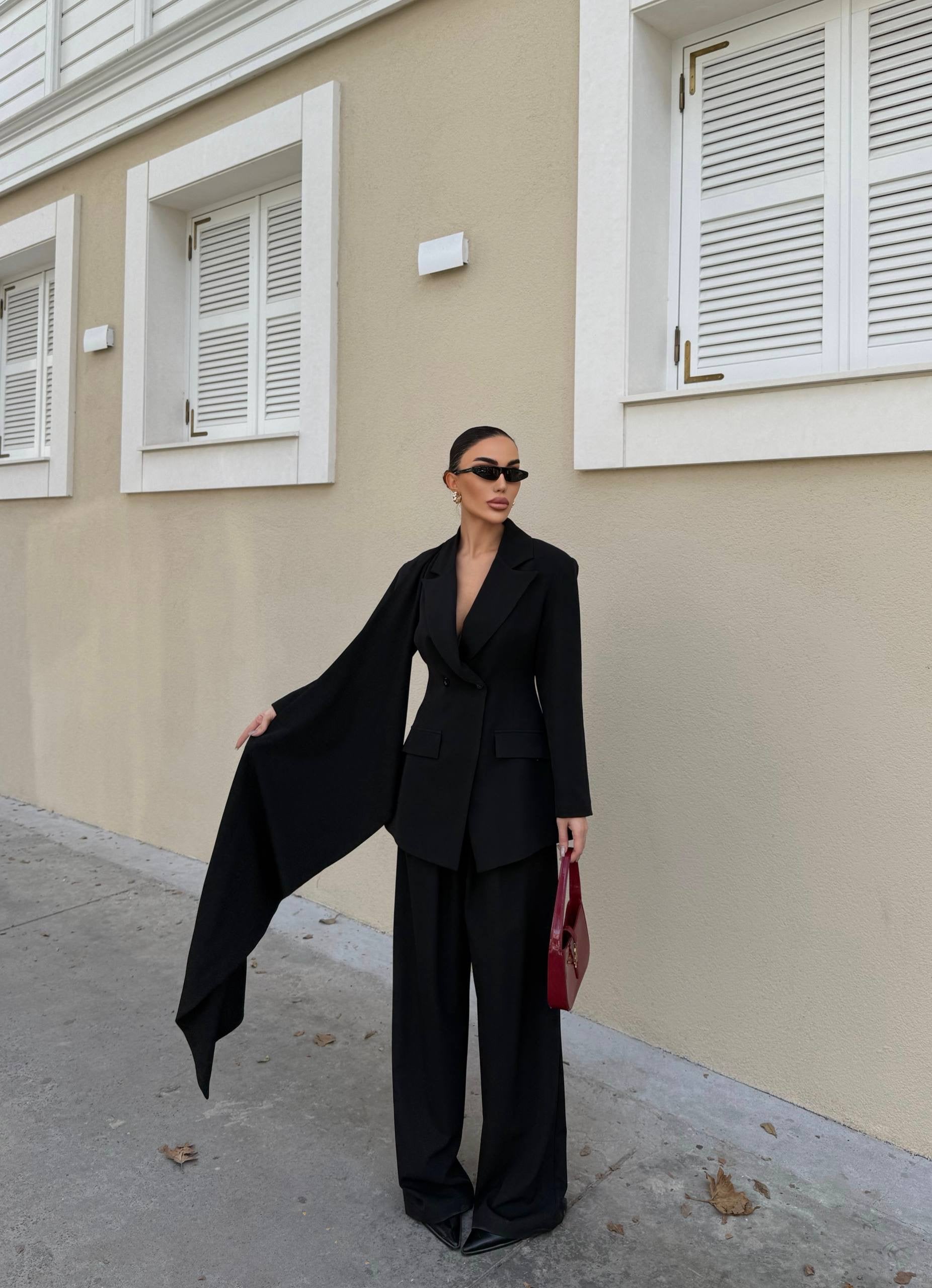 طقم بليزر مع لفحة وبنطلون اسود - KP1463