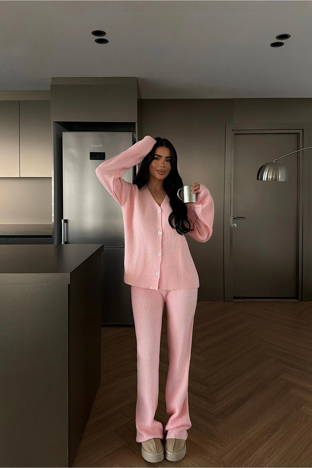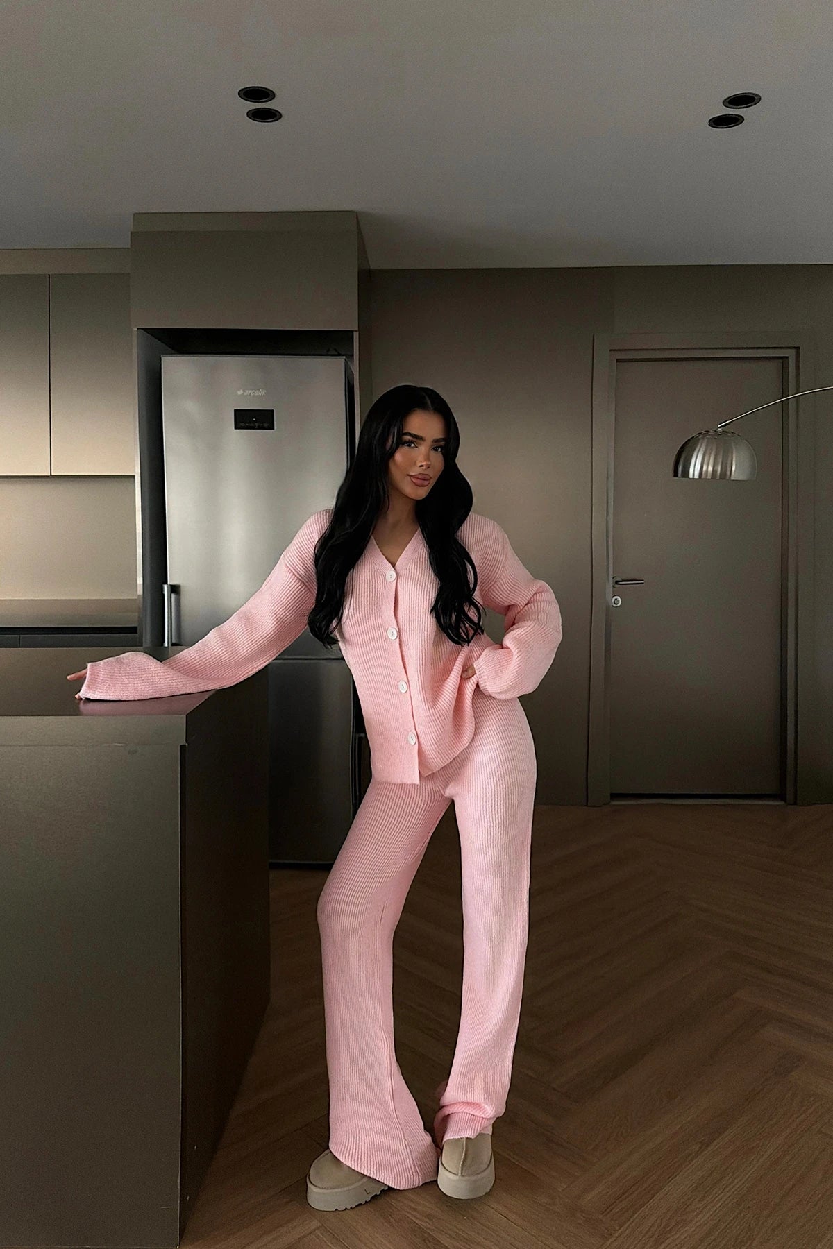 طقم جرزة بأزرار مع بنطلون زهري - KP1504