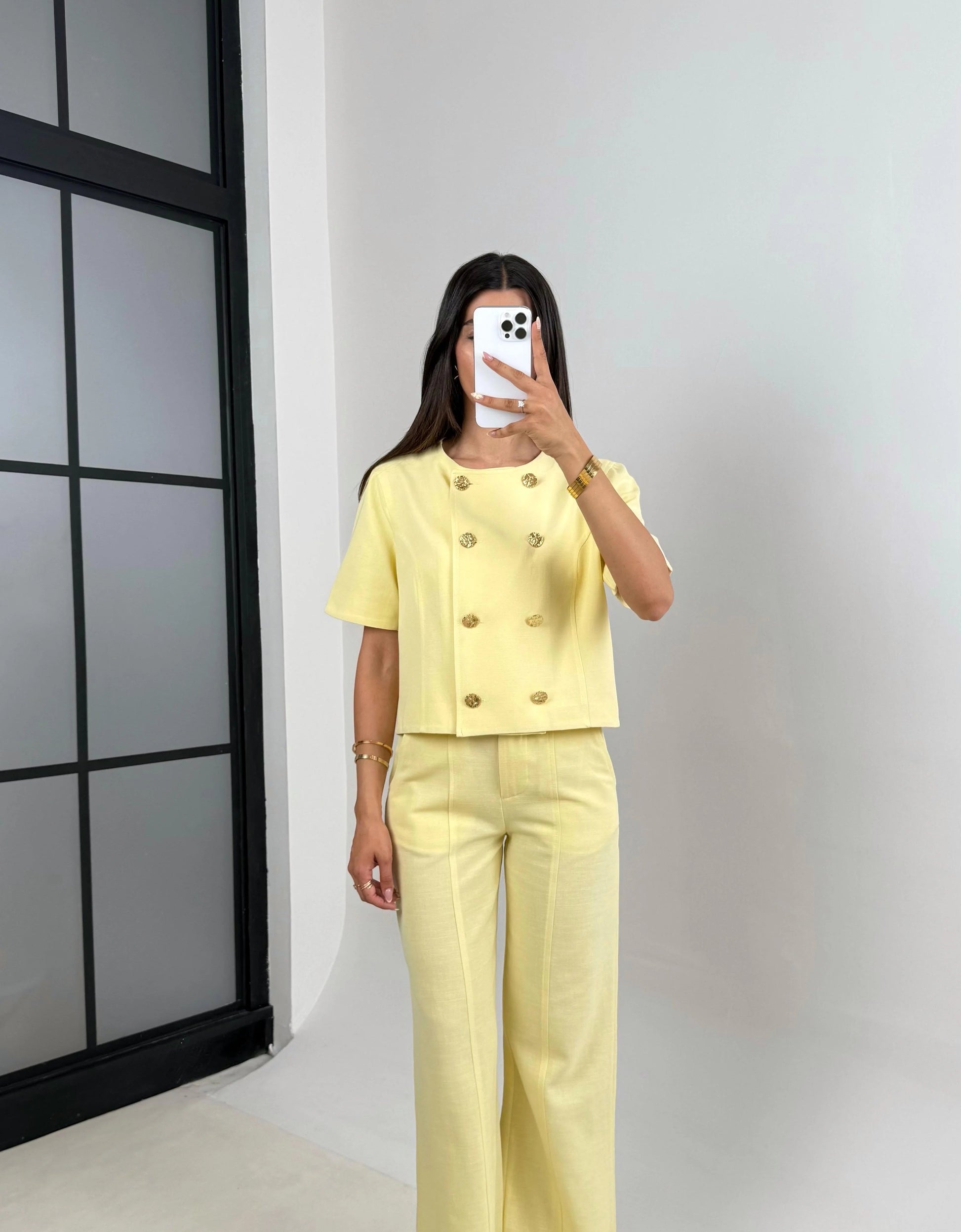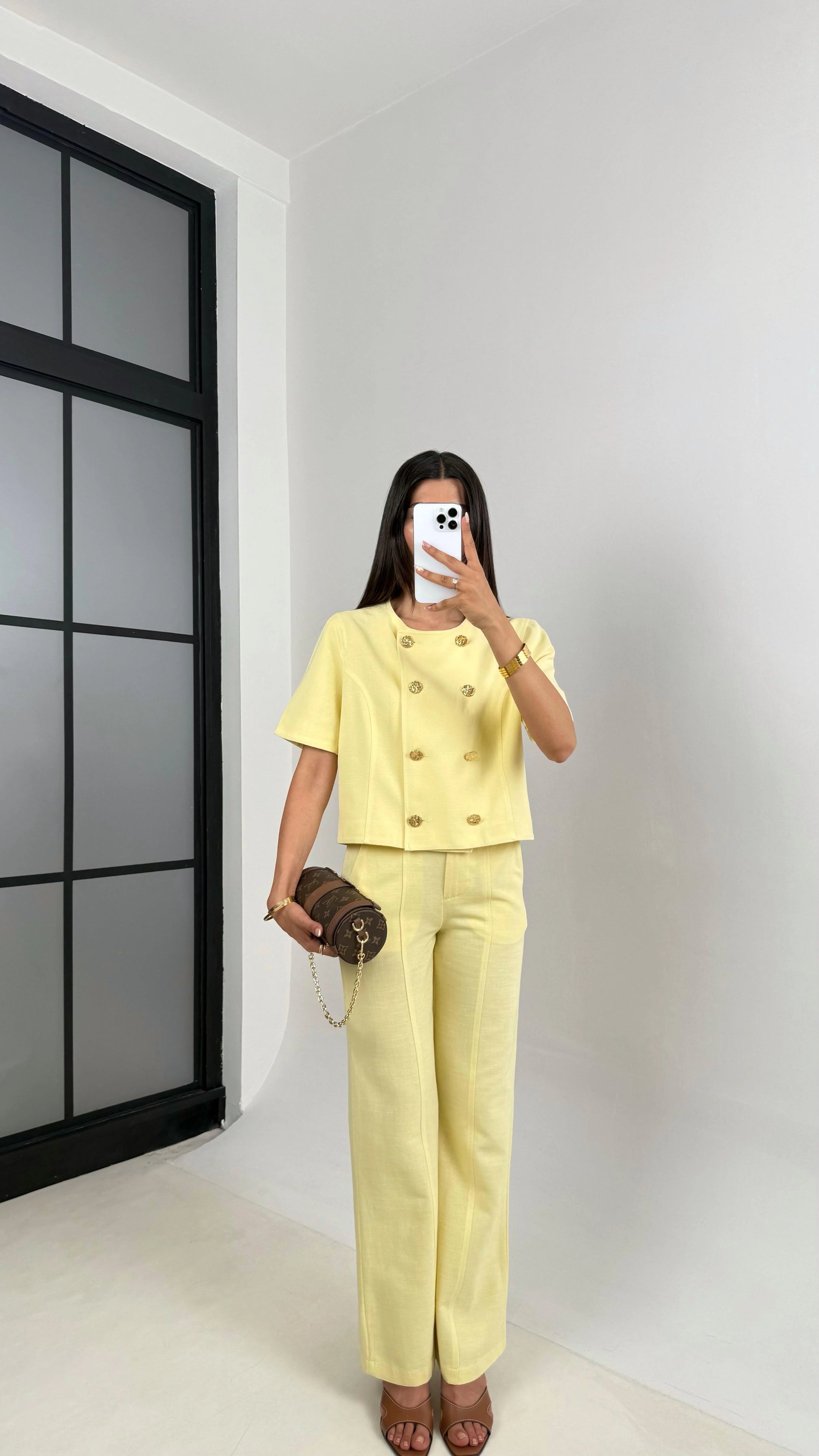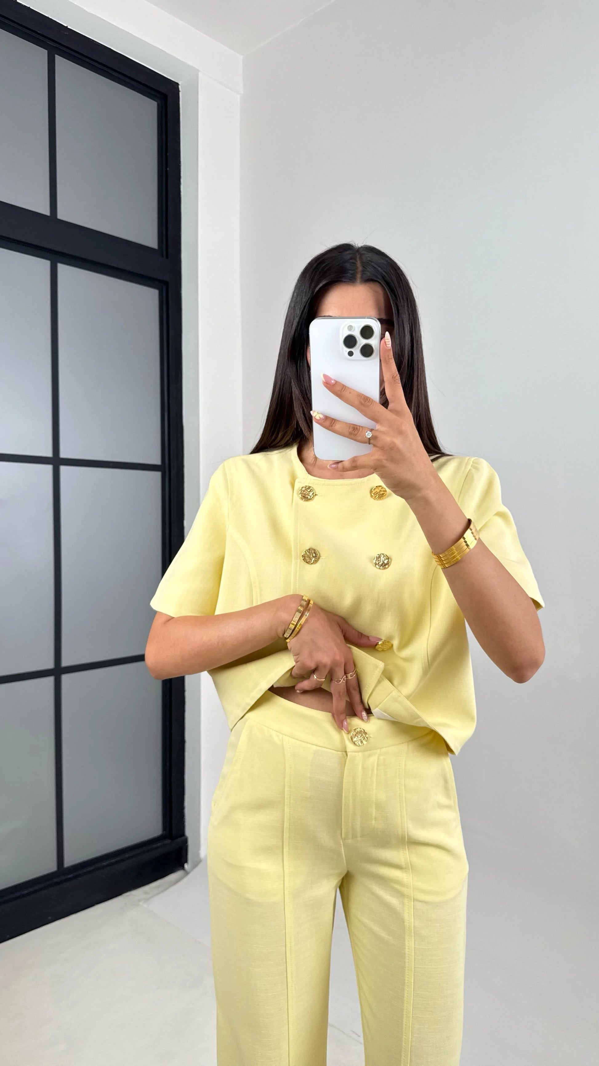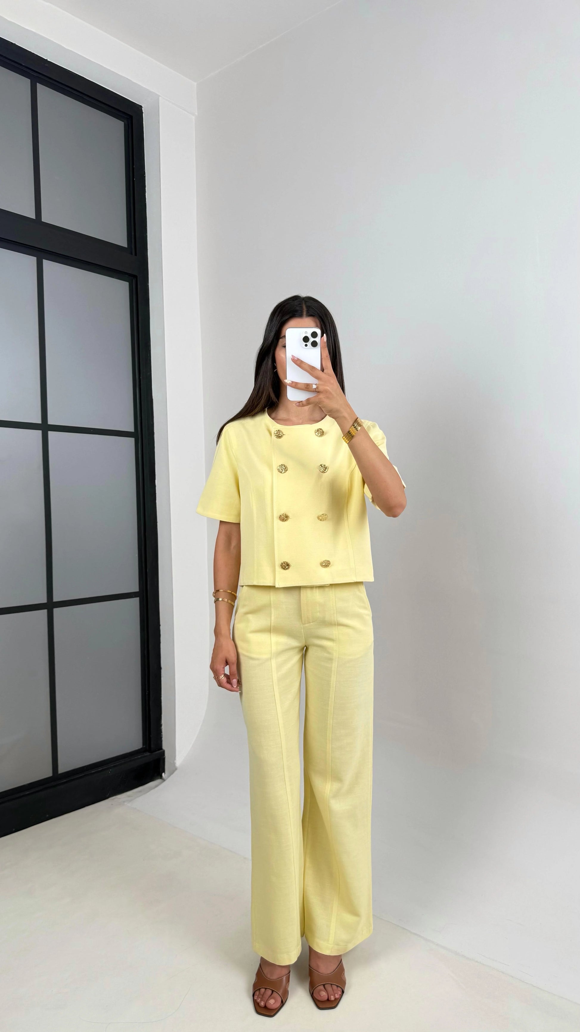 طقم جكيت مع بنطلون اصفر بأزرار ذهبية - KP1322
