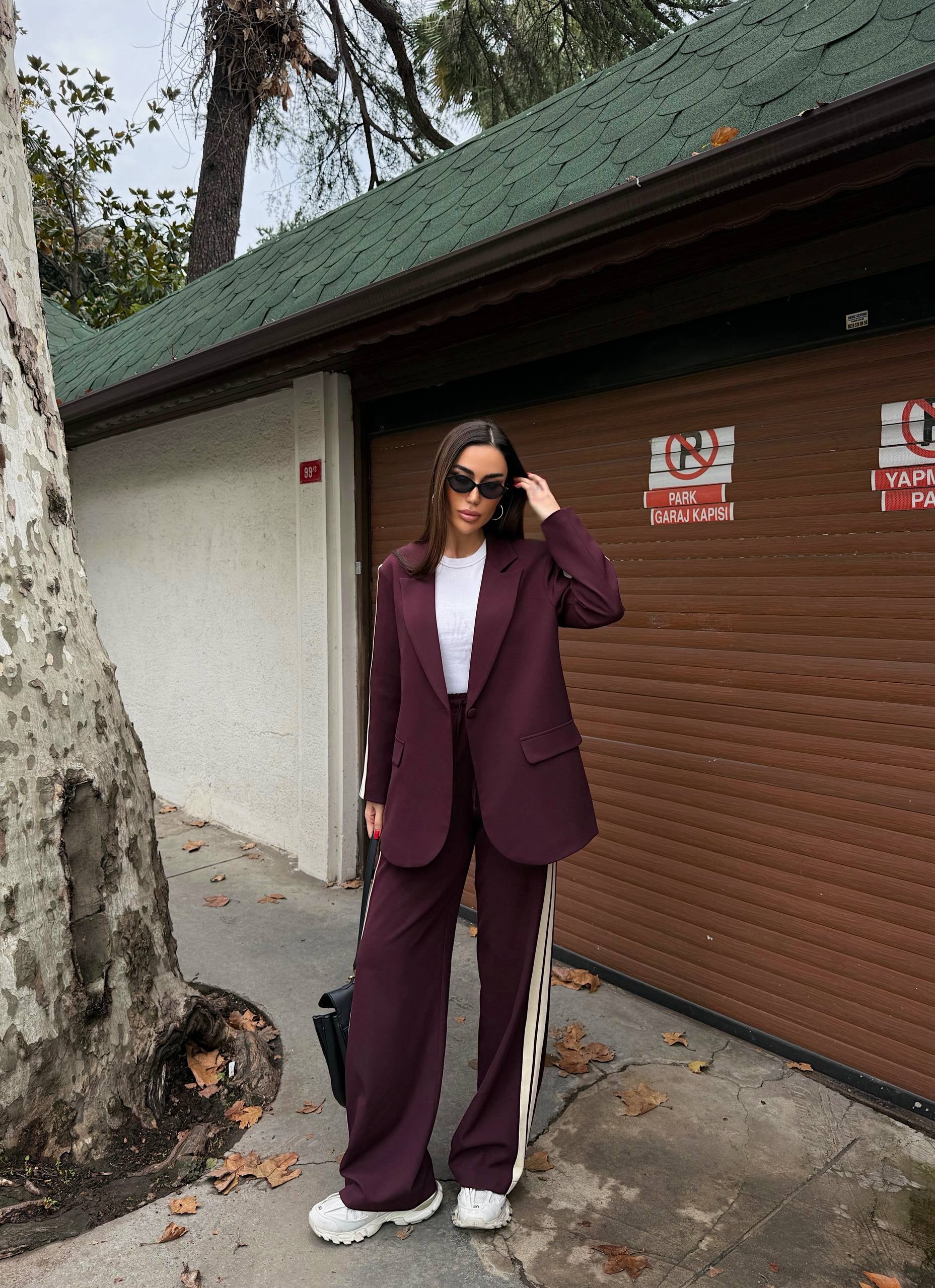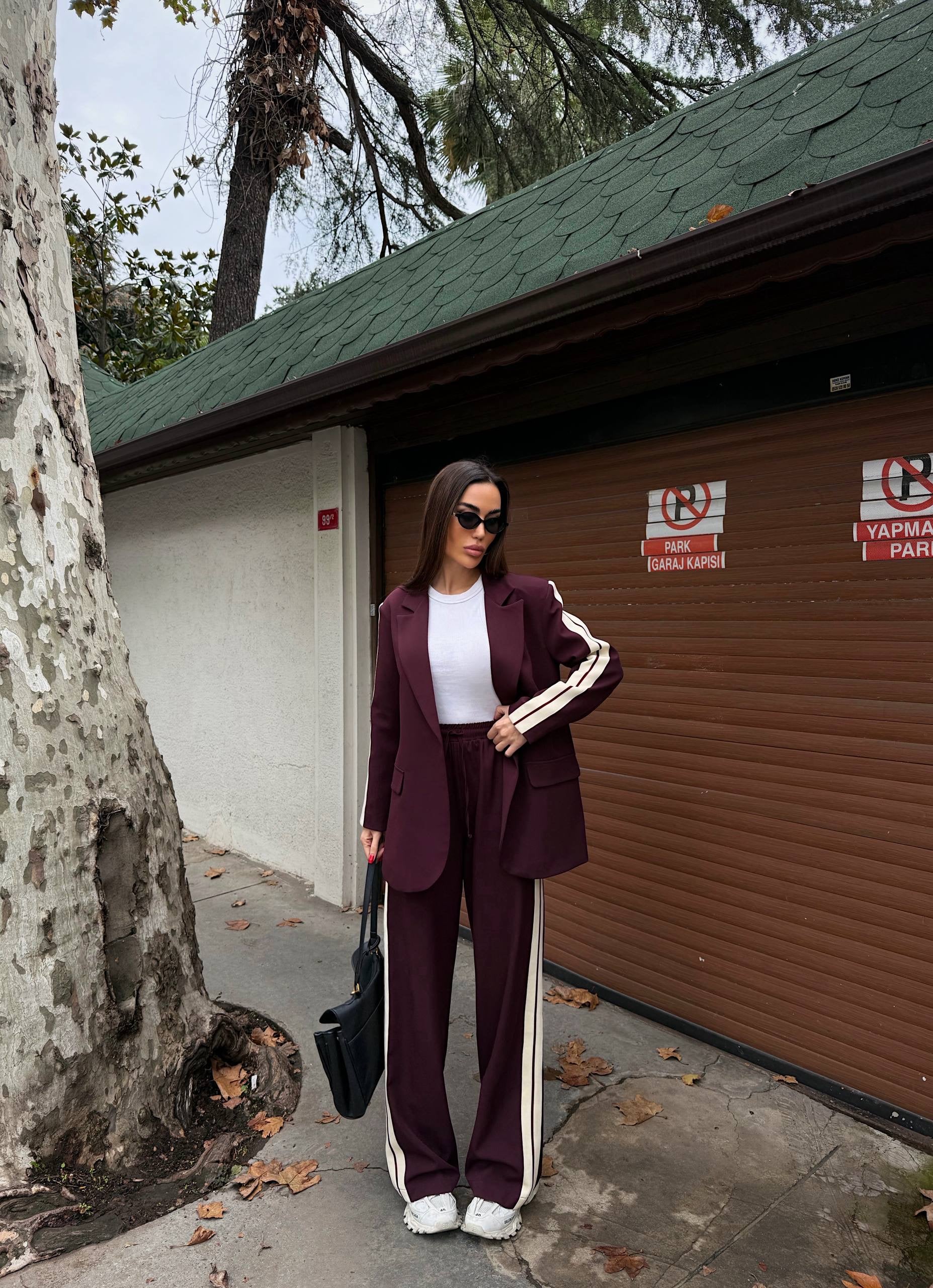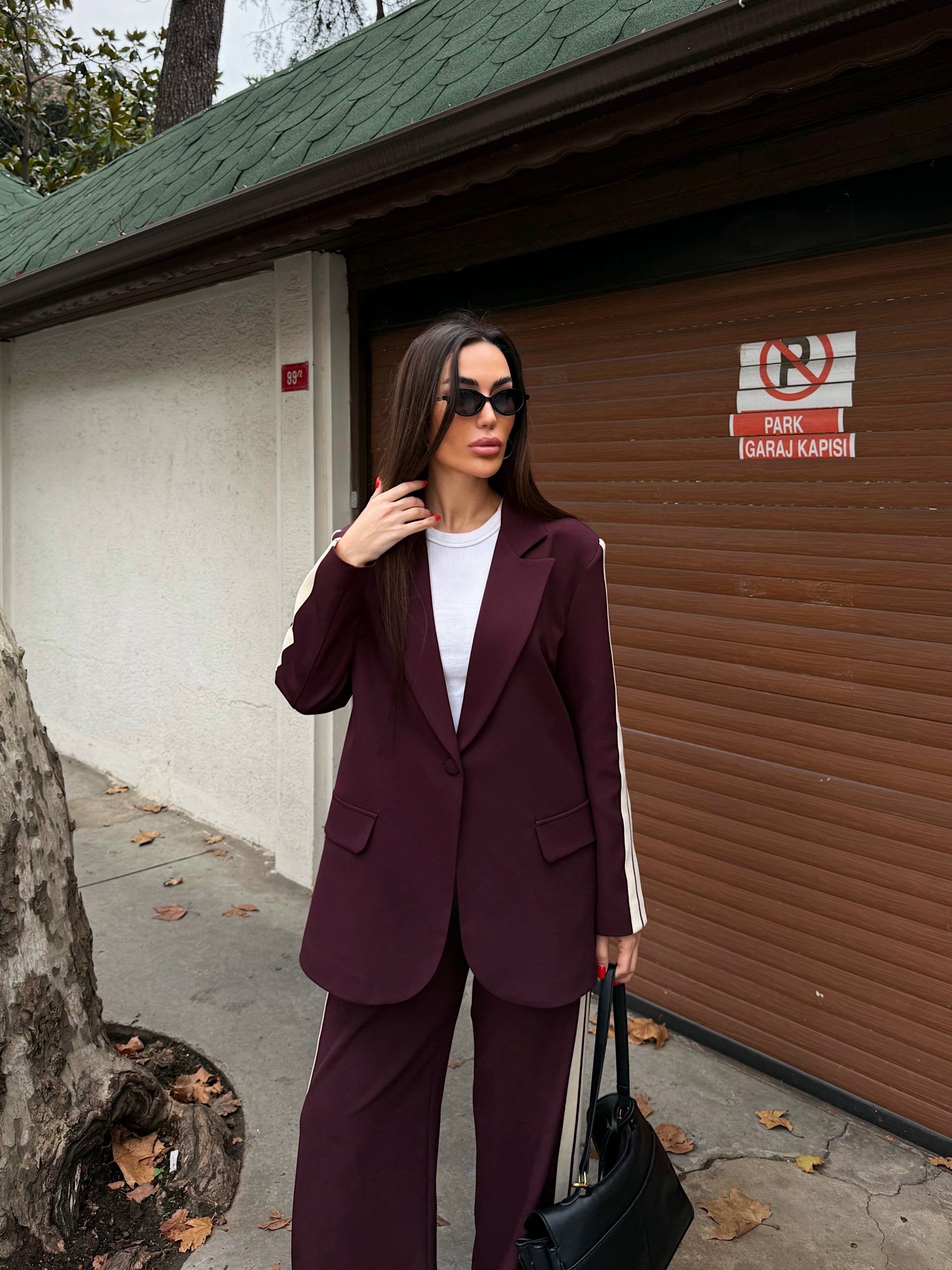 طقم عنابي بليزر مخطط مع بنطلون - KP1464
