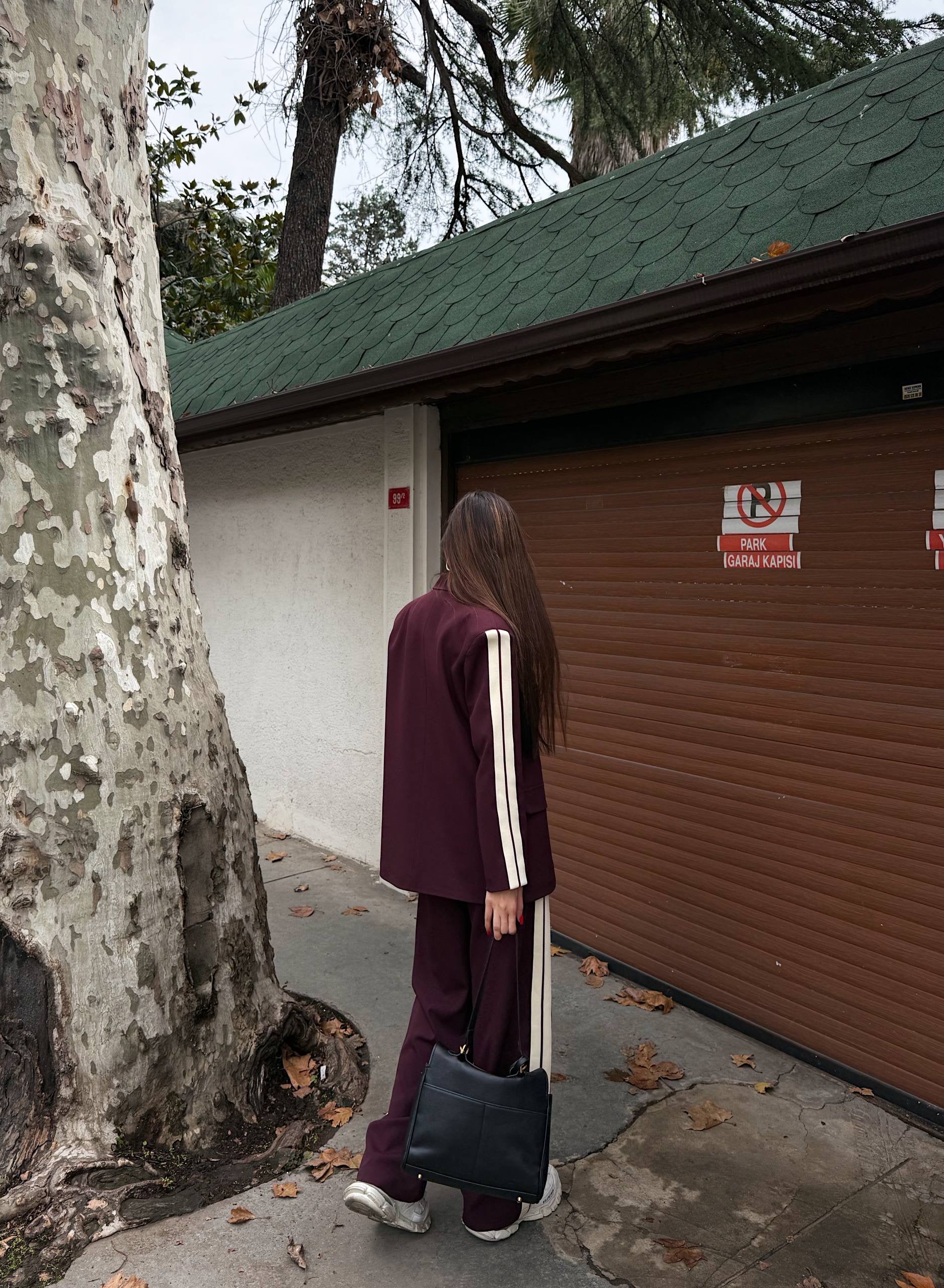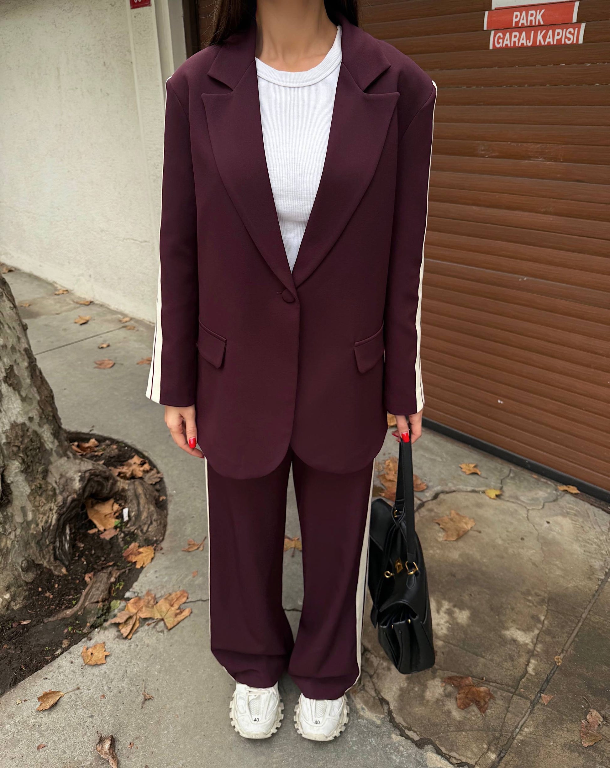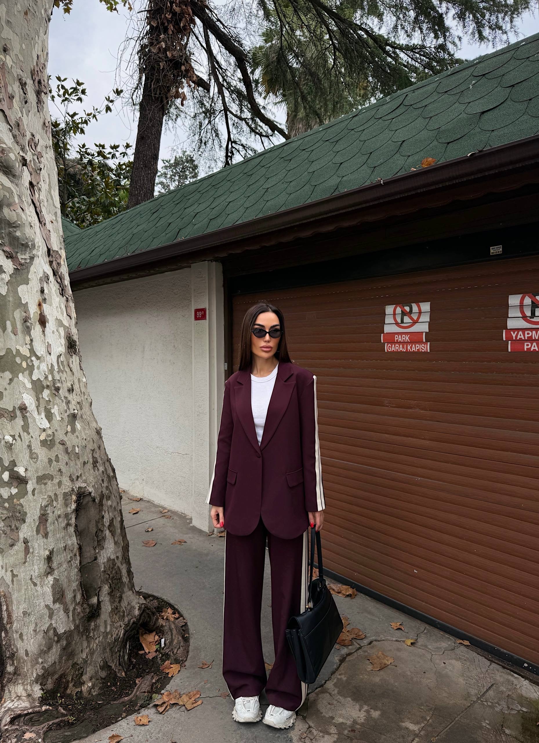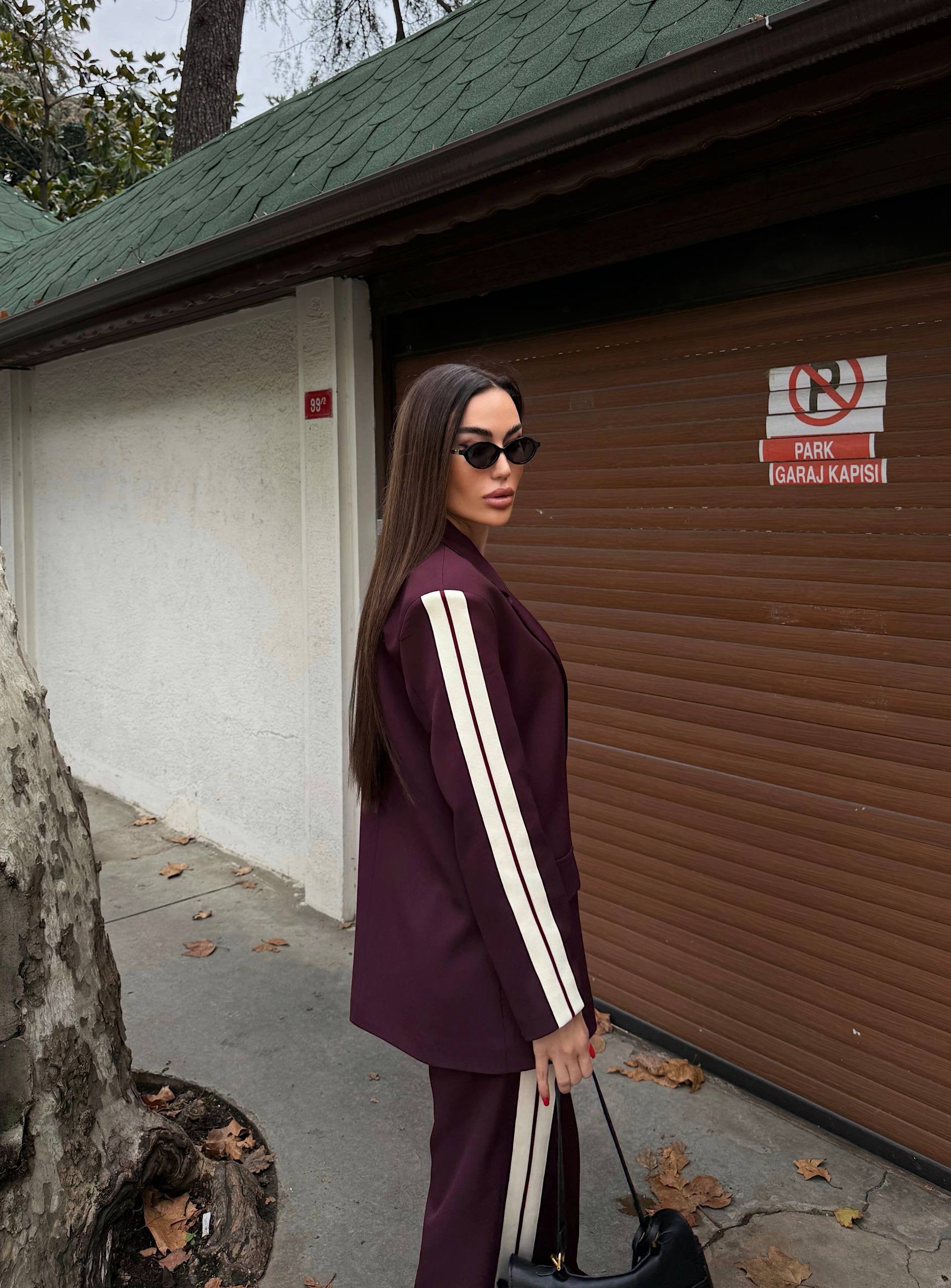 طقم عنابي بليزر مخطط مع بنطلون - KP1464