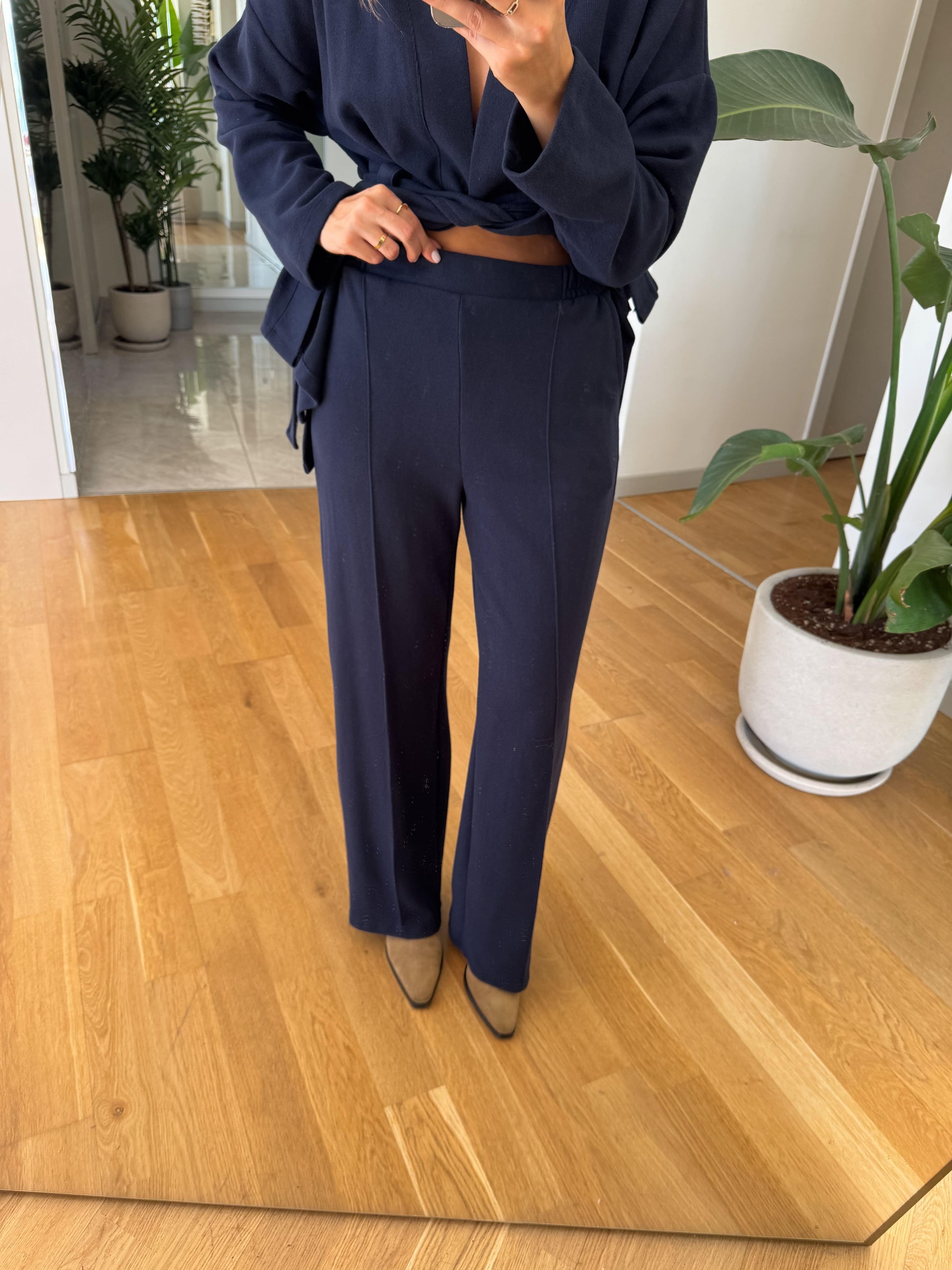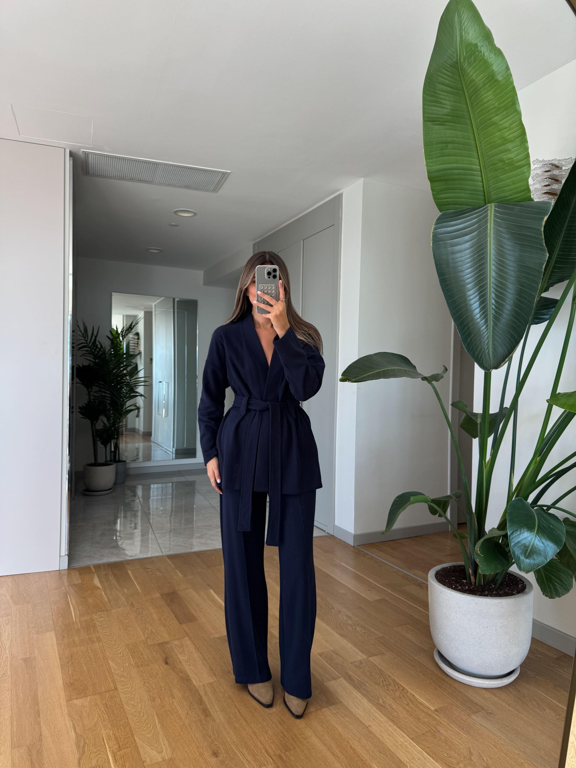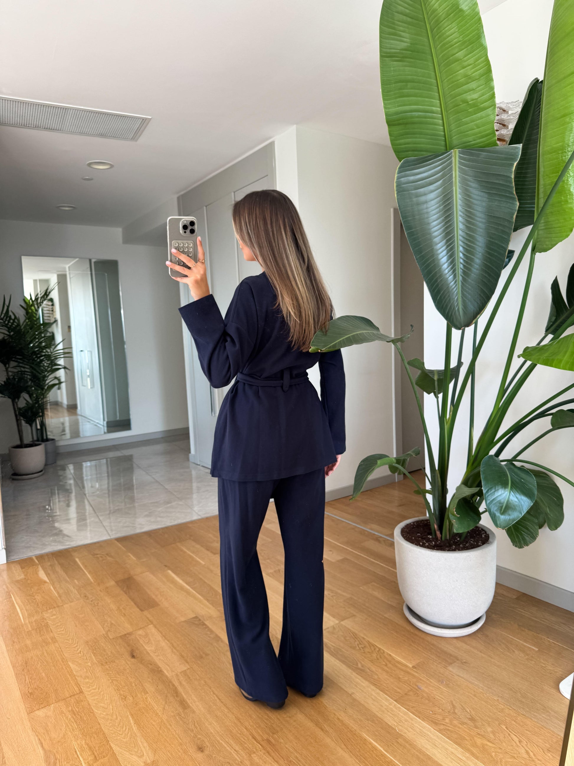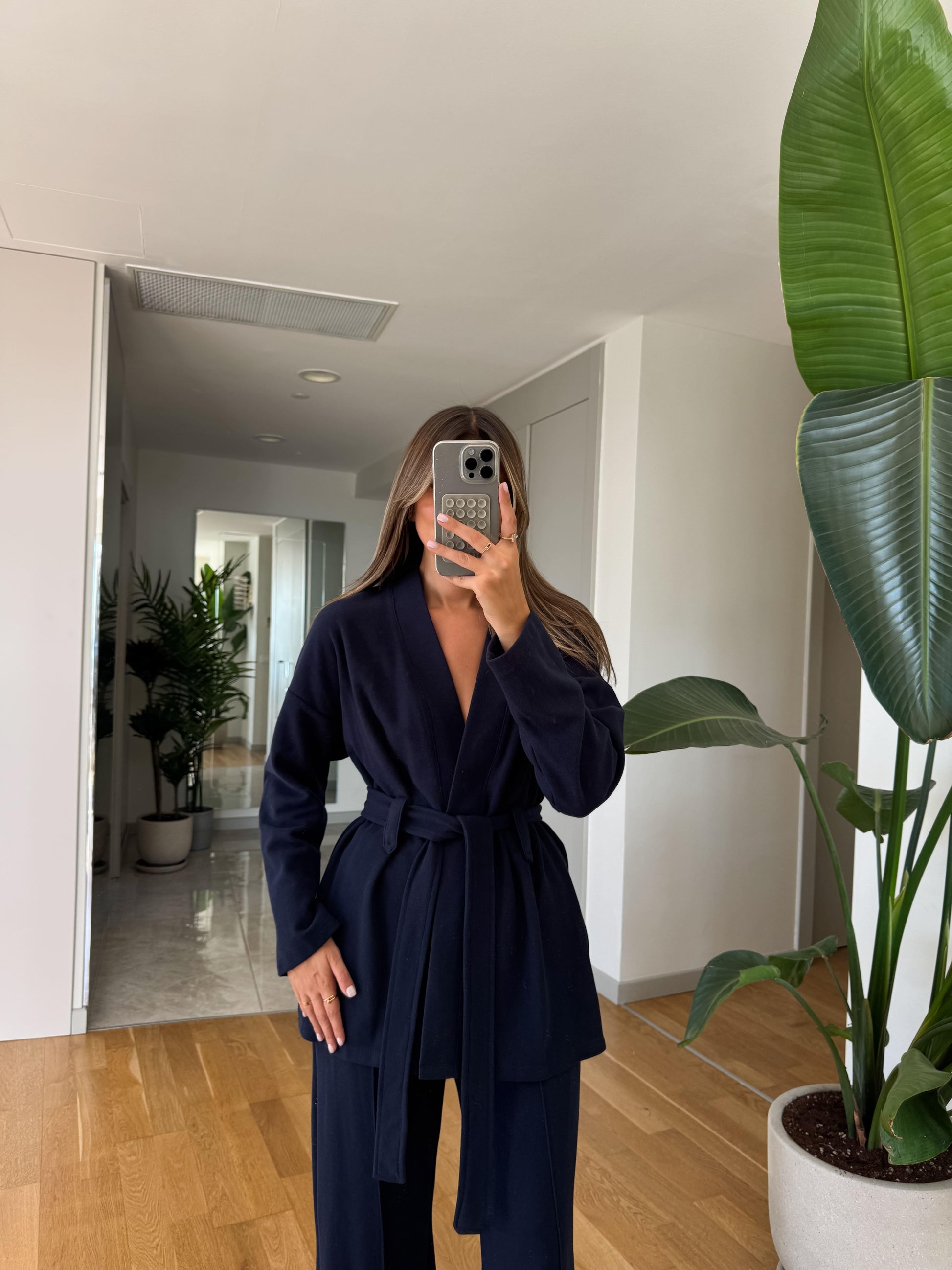 طقم كحلي كيمونو بحزام مع بنطلون - KP1440