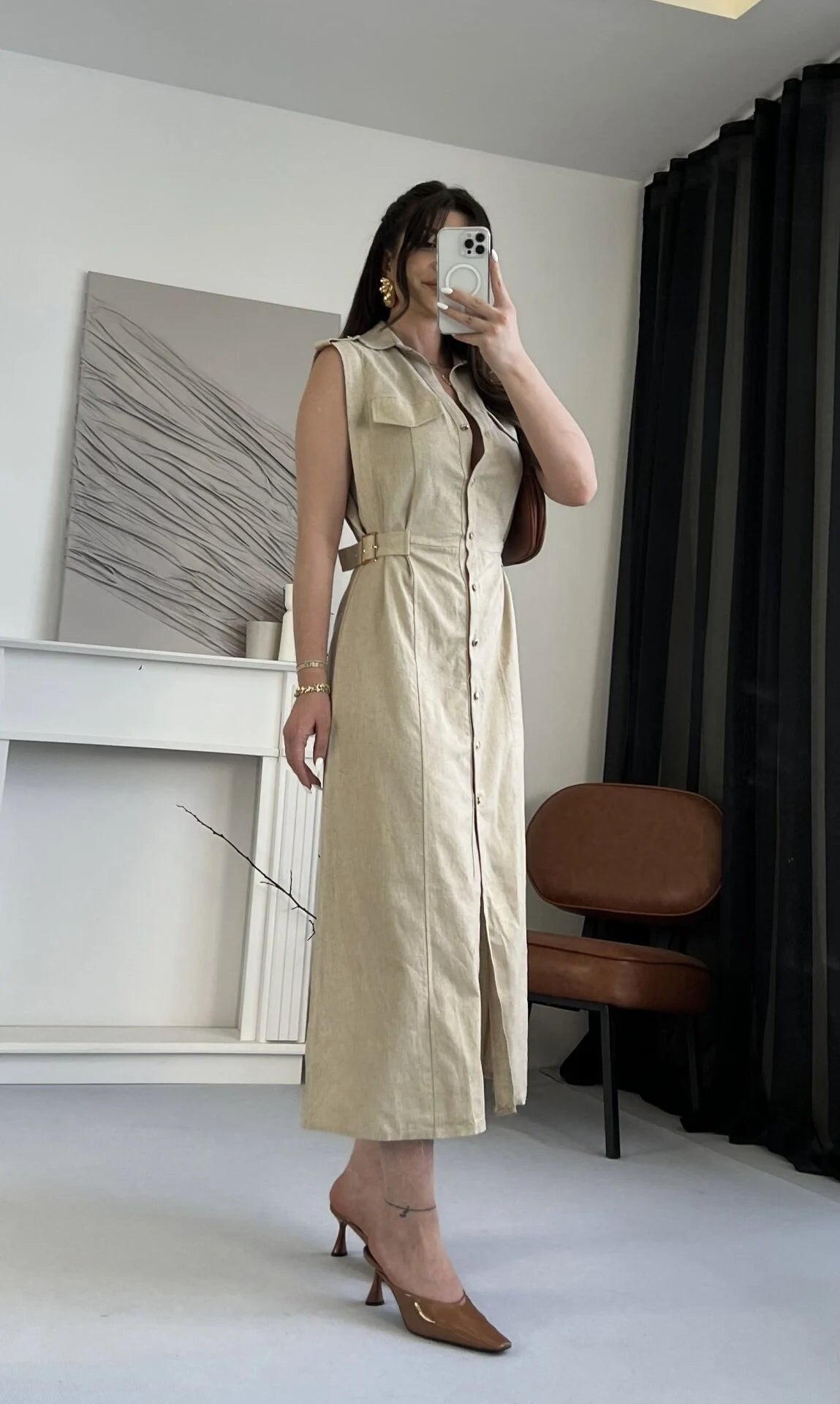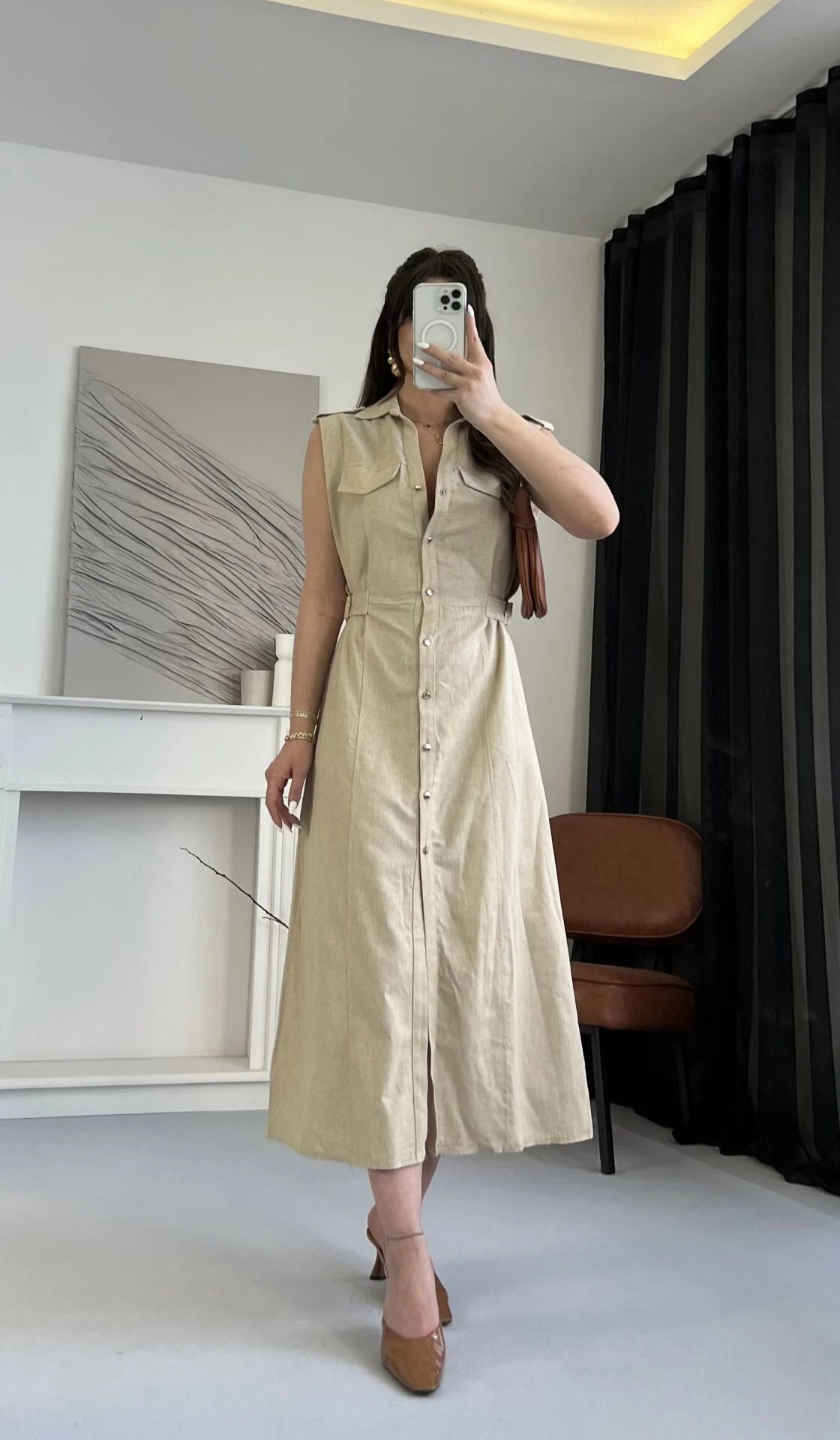 فستان بيج بحزام - KP2167