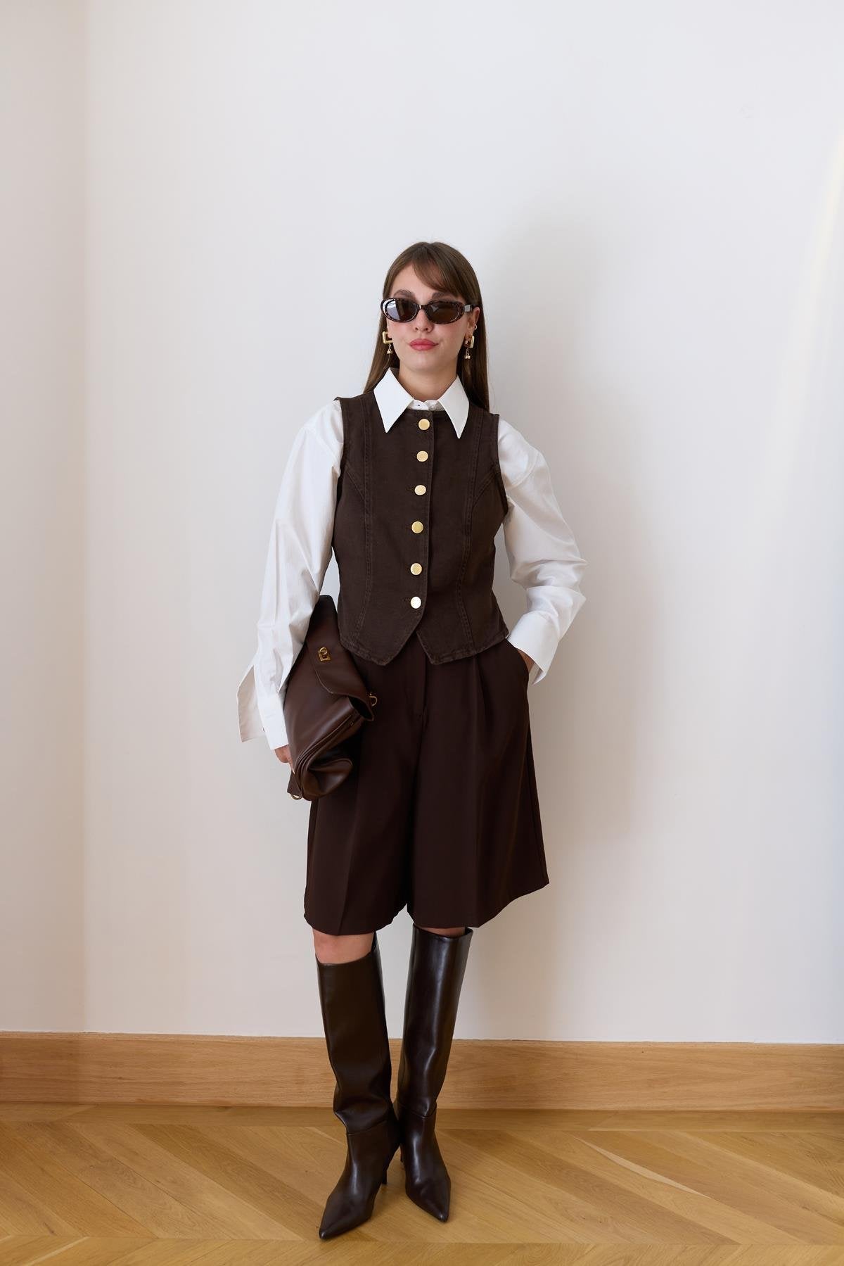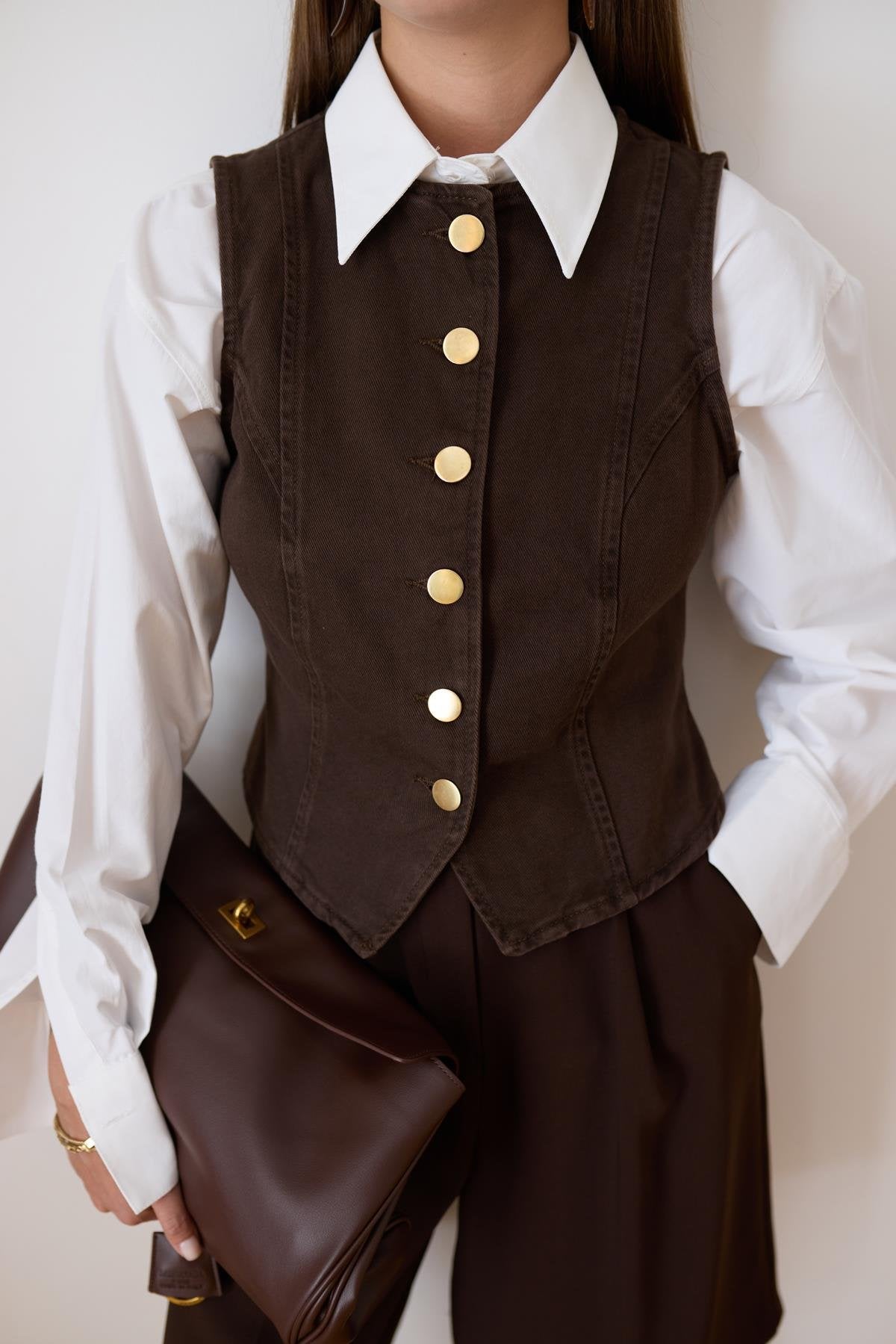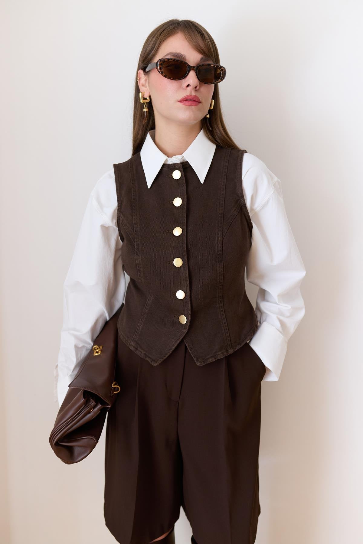 ڤيست بني بأزرار ذهبي Zara - KP4271